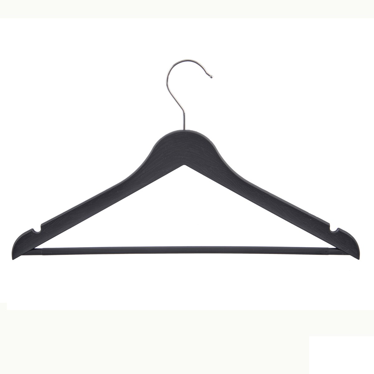 Základným vybavením každej skrine je poriadna zásoba ramienok. Tieto čierne ramienka z plastu PP umožňujú uloženie oblečenia, napr. šiat, košieľ, kabátov a pod. a zavesenie nohavíc či sukní na spodnú tyč či postranné úchyty.