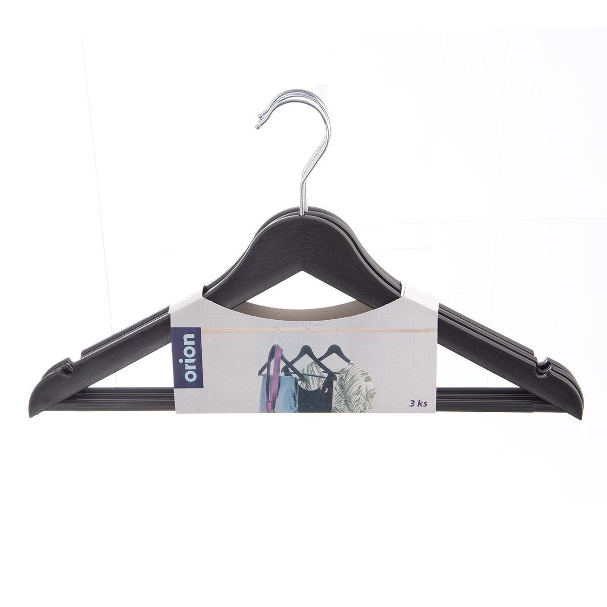 Kód produktu 830751Sada 3 kusov čiernych plastových ramienok ELBA s kovovým háčikom je určené na zavesovanie rôznych druhov oblečenia. Majú plastický dekor imitujúci štruktúru dreva.