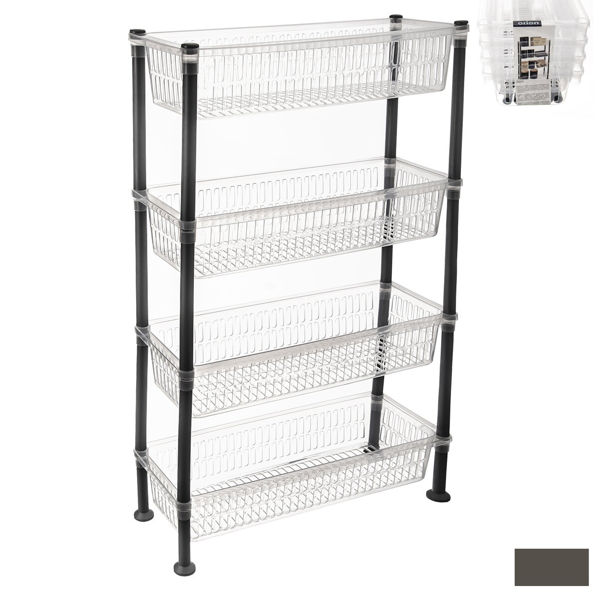 Kód produktu 812612Šedý plastový regál so 4 transparentnými alebo šedými košíkmi uloží drobnosti kdekoľvek v domácnosti. Je úzky, takže vyplní priestor medzi skrinkami alebo poskytne dostatok úložného priestoru tam, kde je málo miesta.