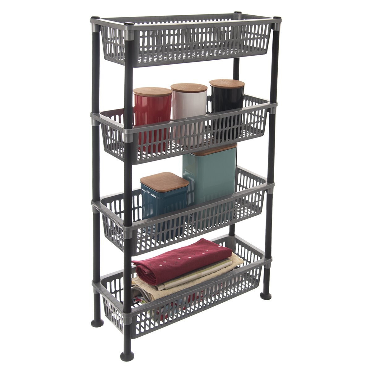Kód produktu 812613Šedý plastový regál so 4 košíkmi uloží drobnosti kdekoľvek v domácnosti. Je úzky, takže vyplní priestor medzi skrinkami alebo poskytne dostatok úložného priestoru tam, kde je málo miesta.