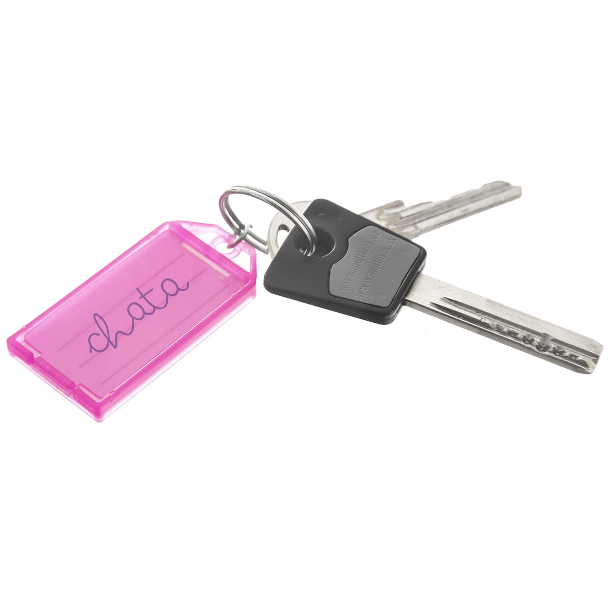 Vnútri je vložený papierový štítok, ktorý ponúka možnosť popisu. Plastovú visačku ľahko otvoríte a označíte zväzok ako potrebujete. Kľúče navlečiete na kovový krúžok a je to.