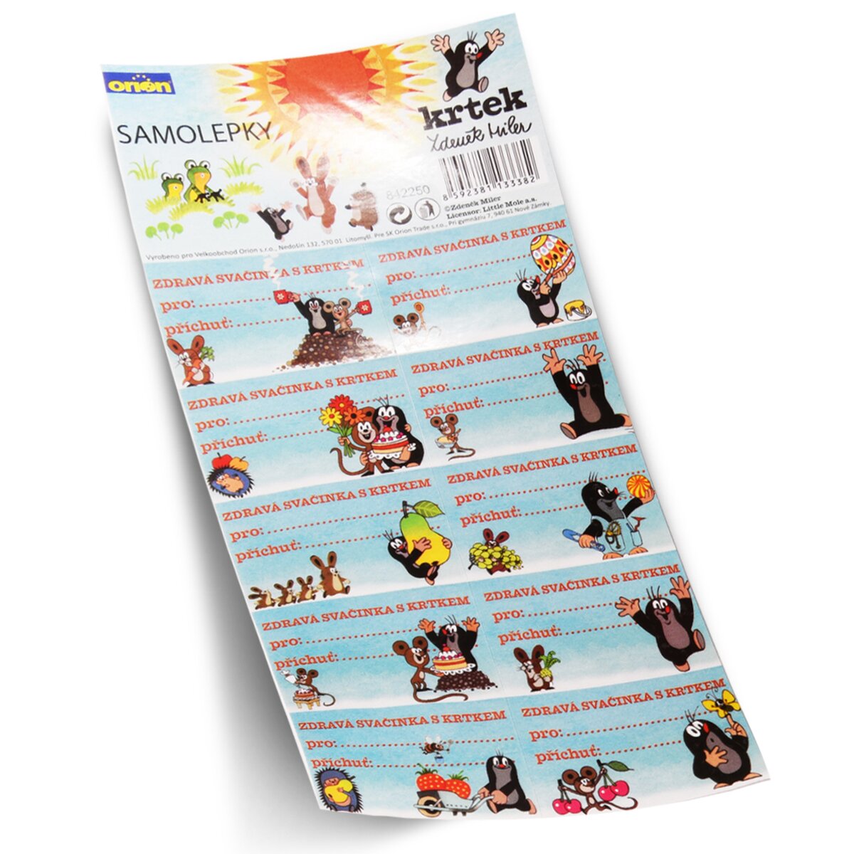Samolepky s Krtkom využijete pri príprave ovocných, zeleninových aj mäsových pochúťok pre tých najmenších. Môžete si tak poznačiť z čoho ste desiaty pripravili alebo pre koho, v prípade, že chcete niekoho obdarovať. Veselé obrázky Krtka a jeho kamarátov potešia deti. Fľaška s desiatou bude pre nich veľmi lákavá. Súprava10 ks s rôznymi motívmi. Rozmery: 5x3 cm.