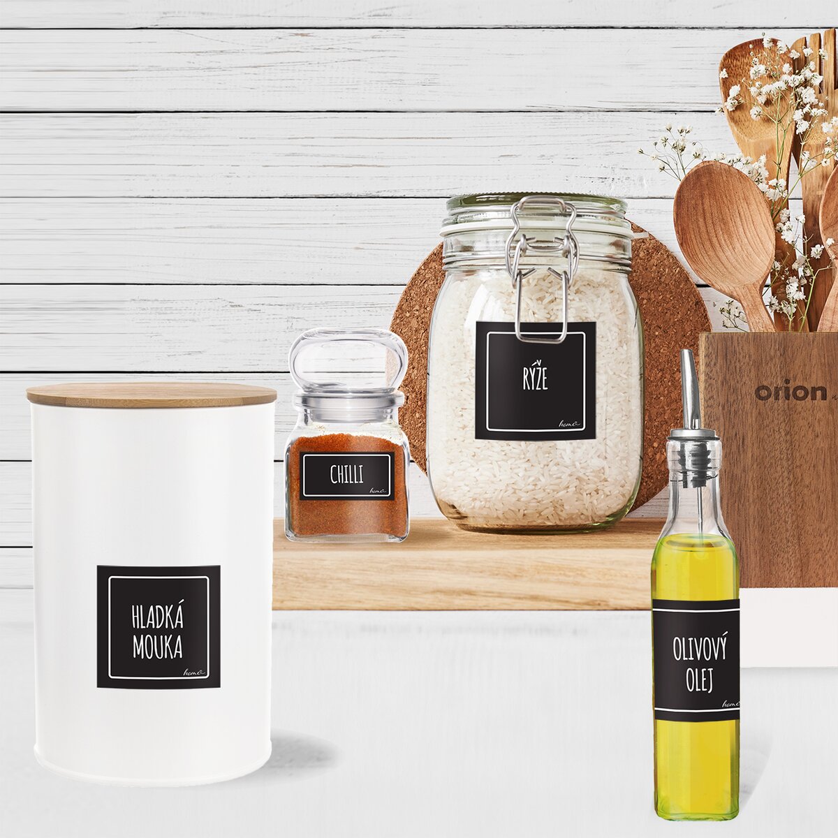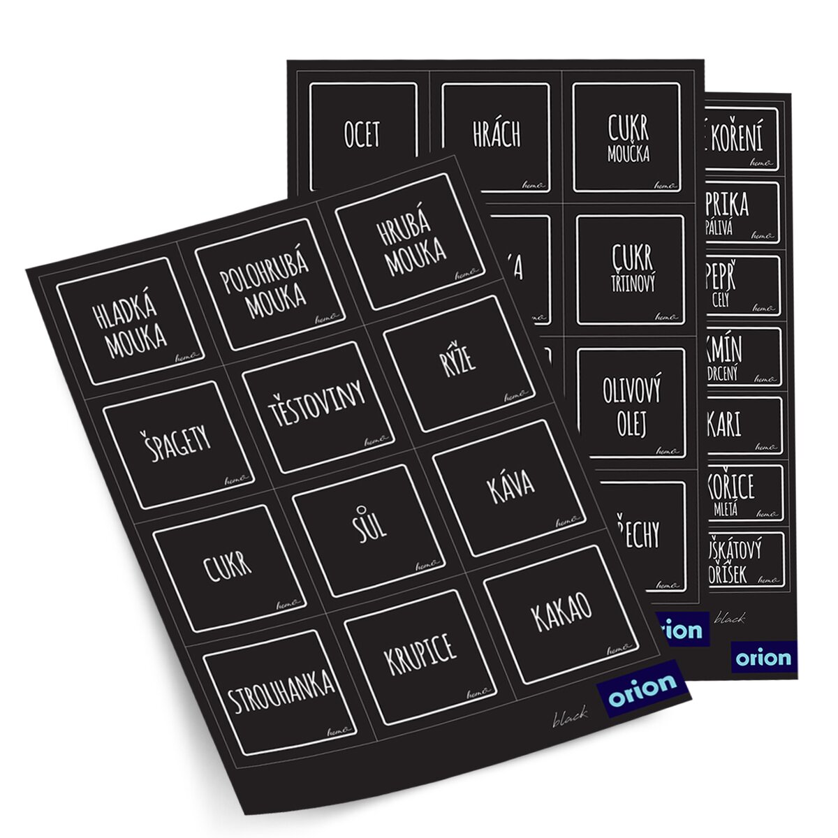 V balení sú 3 archy (celkom 47 samolepiek) s najpoužívanejšími surovinami, nájdete tu napr. múku, cukor, strukoviny, strúhanku, orechy, ale aj rôzne druhy voňavého korenia. Hodí sa napr. na označenie plechových dóz Whiteline alebo koreničiek Black.