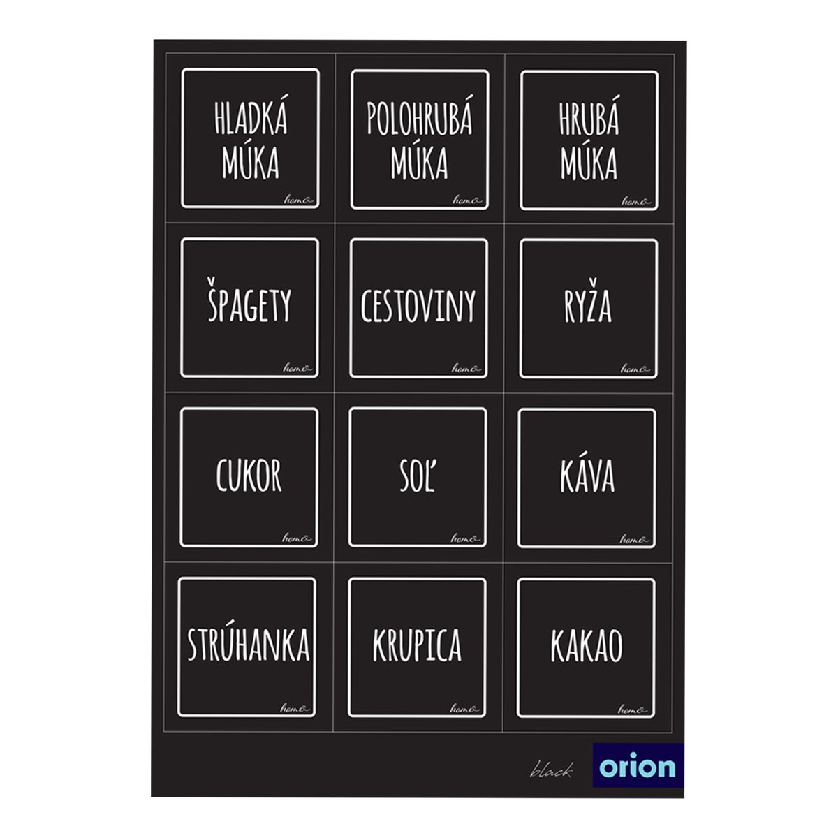 Viac informáciíČierne samolepky s bielym rámčekom sú vhodné na označenie dóz, fliaš, koreničiek a potravinových boxov. Sypké aj tekuté pochutiny budú prehľadne uložené v zásuvkách a špajze, navyše budú mať šmrnc. Štvorcová papierová samolepka s lamináciou má veľkosť 4,7x4,7 cm, menšia obdĺžniková 4,7x2,5 cm.