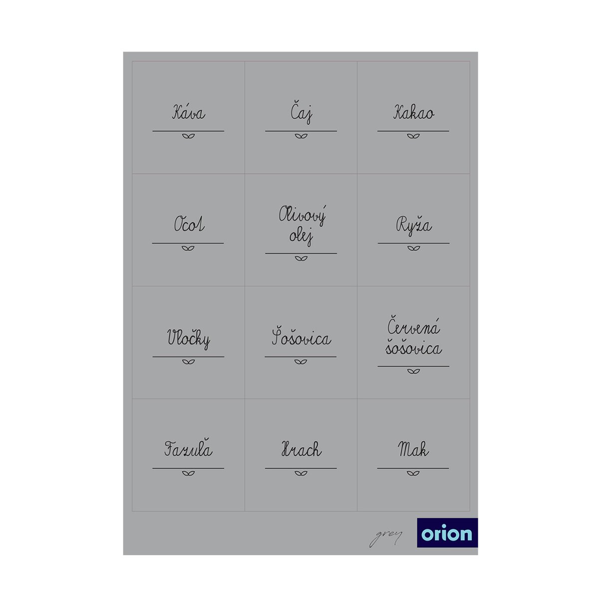 V balení sú 4 archy s predtlačenými najpoužívanejšími surovinami, nájdete tu napr. múku, cukor, strukoviny, strúhanku, orechy, ale aj rôzne druhy voňavého korenia. Hodí sa napr. na označenie plechových dóz Whiteline alebo najrôznejších uzatvárateľných pohárov a koreničiek.