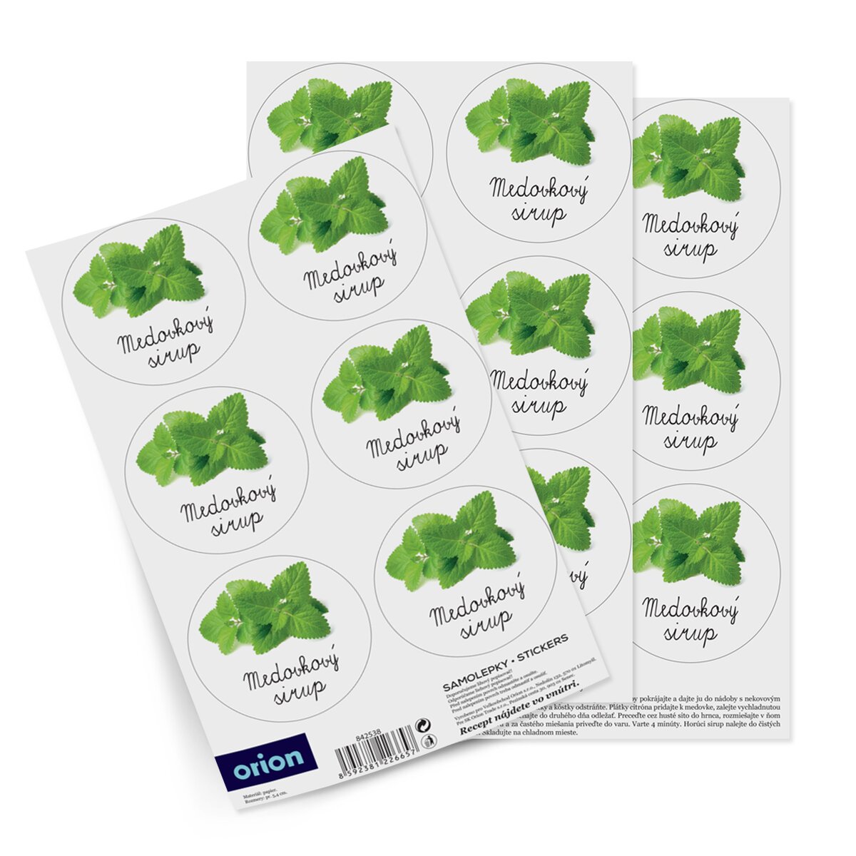Sada papierových samolepiek sa výborne hodí na polepenie fliaš a pohárov, v ktorých chcete sirup uchovať. V balení sú 3 archy aj s receptom, ako sirup jednoducho pripraviť.