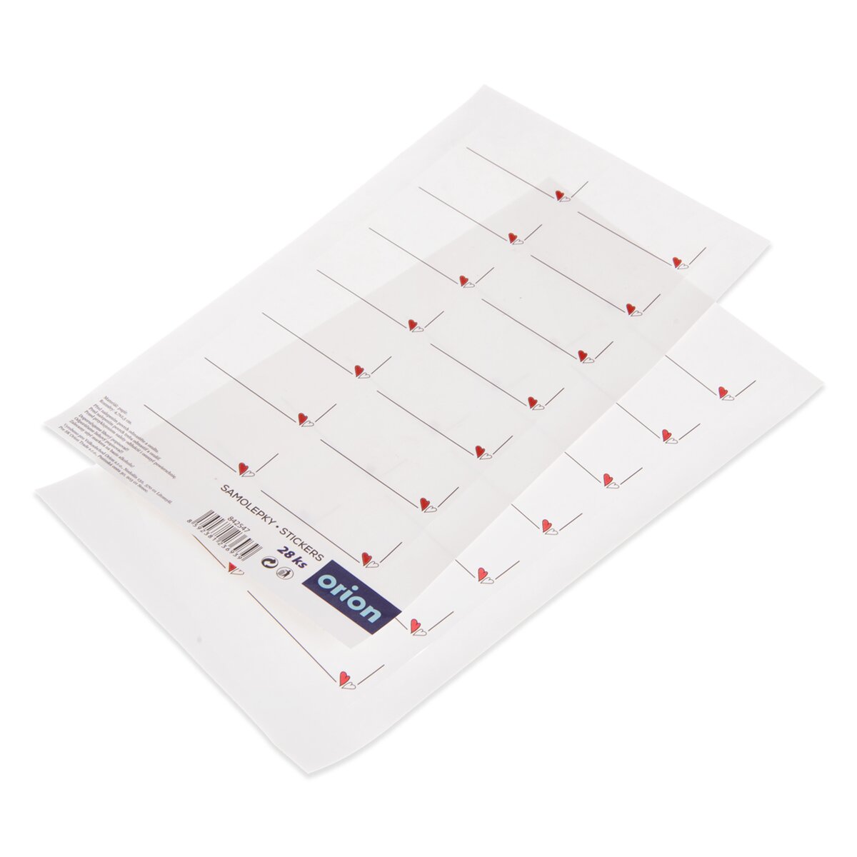 Kód produktu 842547Sada 28 papierových samolepiek SRDIEČKA s lamináciou, určených na vlastné popísanie. Každá nálepka má rozmer 4,3 x 2,5 cm.
