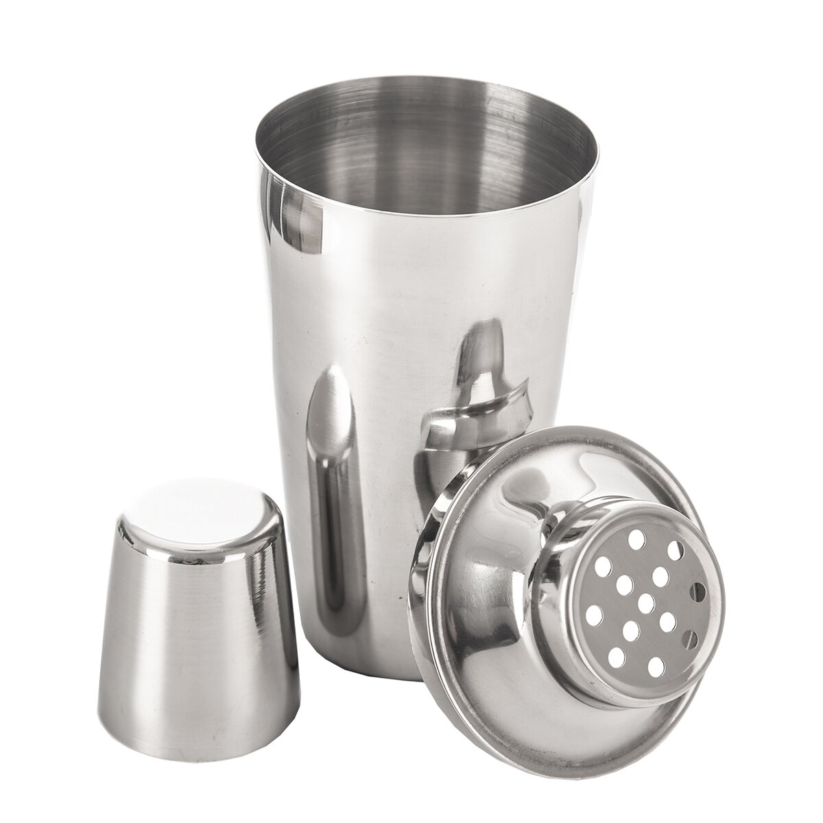 Kód produktu 122851Celonerezový šejker na miešané drinky, koktaily aj proteínové nápoje s objemom 0,5 l, zložený z 3 častí.