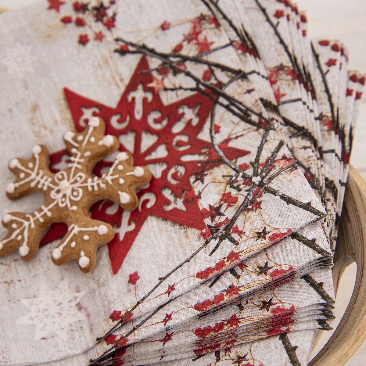 Táto sada 20 kusov trojvrstvových obrúskov s decentným vianočným motívom podčiarkne slávnostné stolovanie nielen počas vianočných sviatkov.