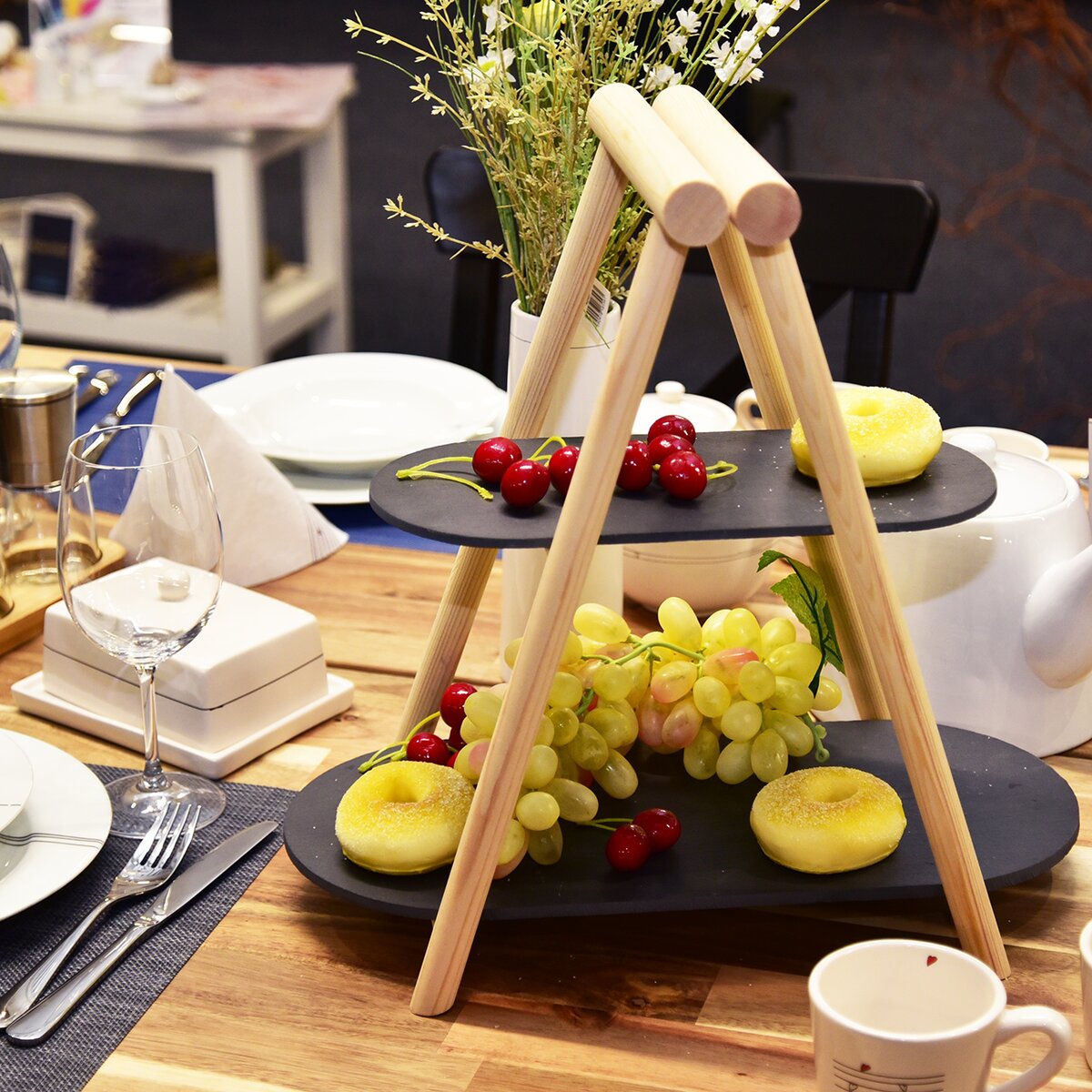 Viac informáciíAk chcete ponúknuť svojim hosťom na oslave, priateľom pri posedení na terase či záhrade štýlový servis sladkých alebo slaných dobrôt , bude 2-poschodový stojan tou správnou voľbou. Kombinácia surového borovicového dreva a dvoch odnímateľných bridlicových dosiek urobí aj z najobyčanejšieho servírovania luxusnú záležitosť.
