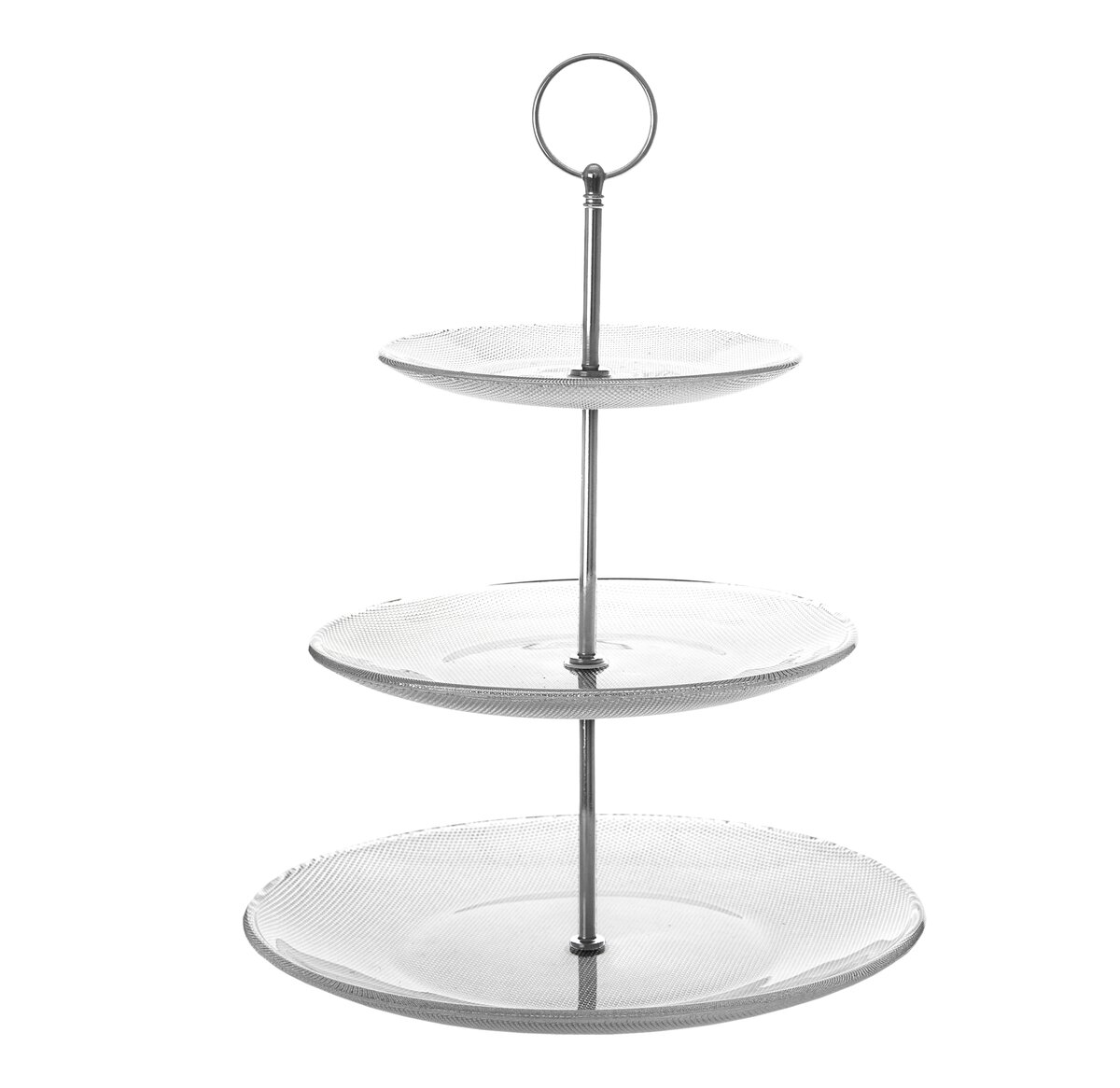 Kód produktu 122969Trojposchodový stojan EMA určený na servírovanie dezertov a slaných pochutín. Tvorí ho kovové držadlo a tri sklenené taniere s priemerom 15 cm, 20 cm a 25 cm.