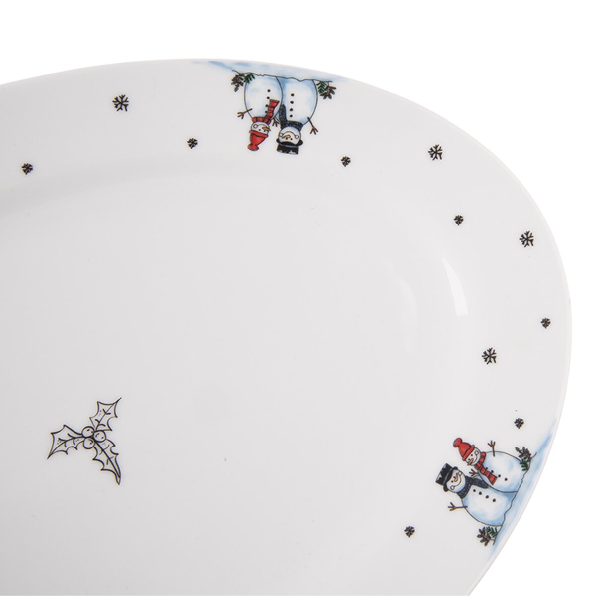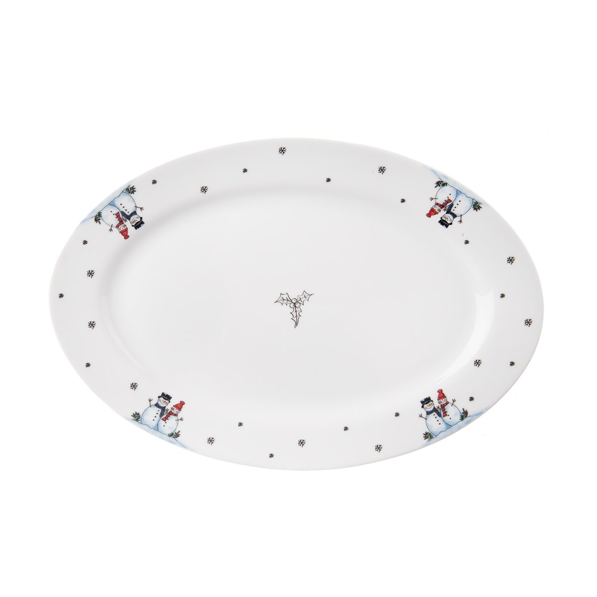 Kód produktu 129530Oválny servírovací tanier z porcelánu je zdobený originálnym motívom dvojice snehuliaka, možno ho umývať v umývačke riadu a používať v mikrovlnnej rúre.
