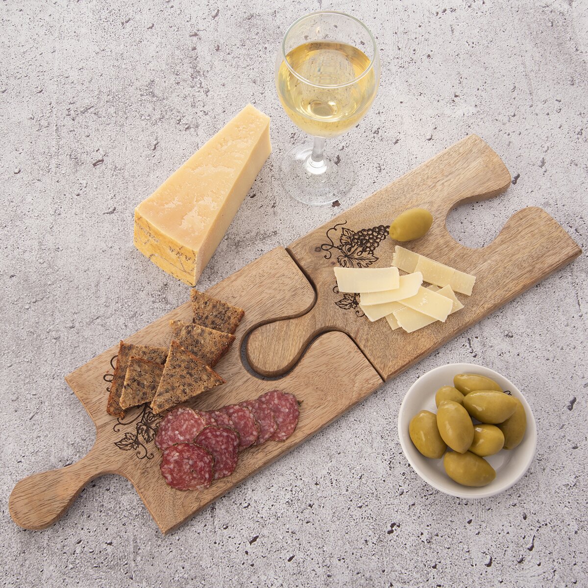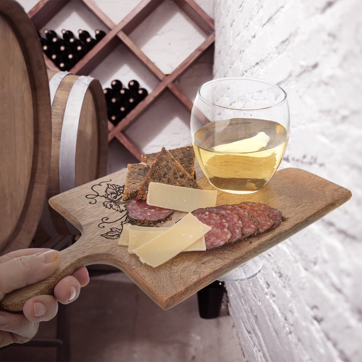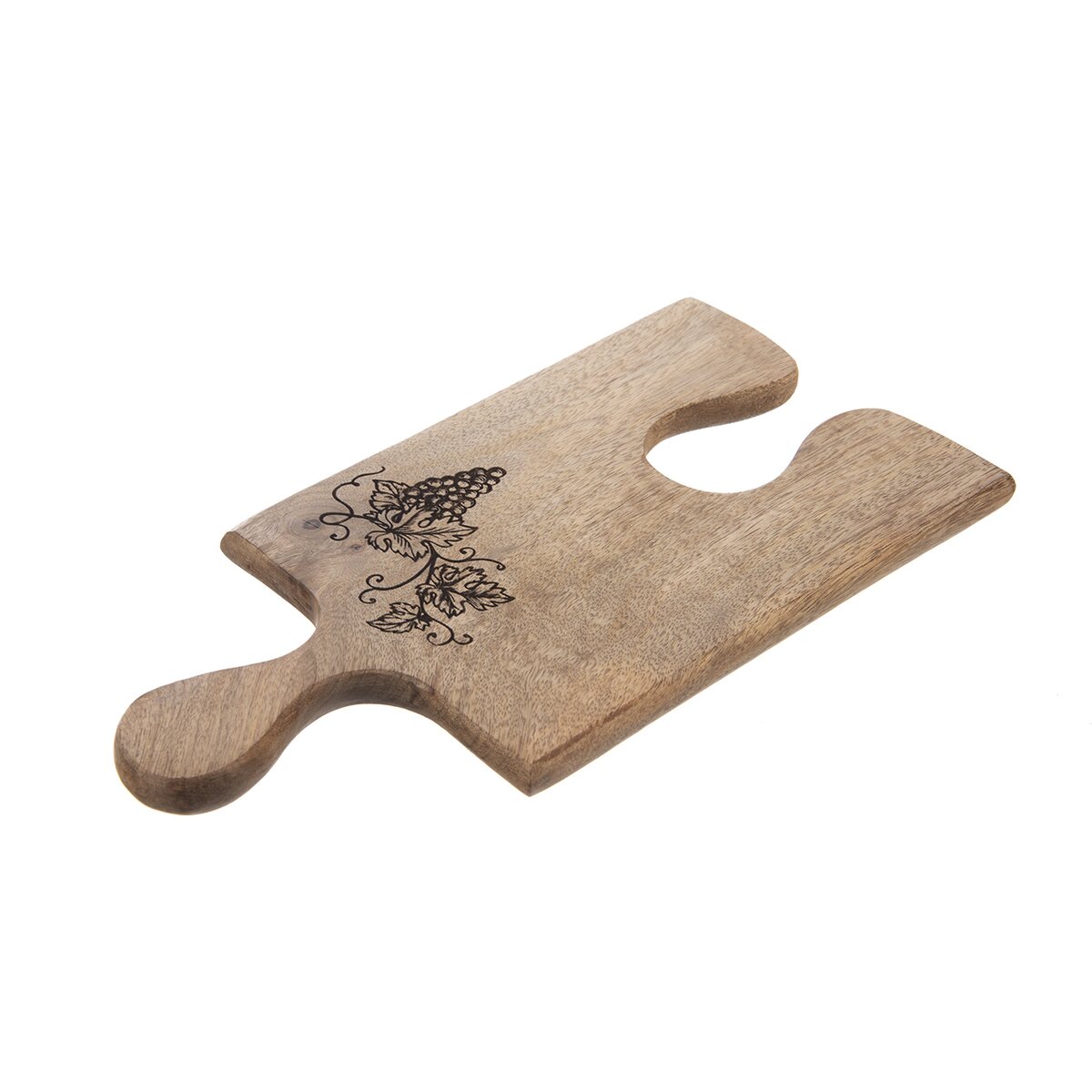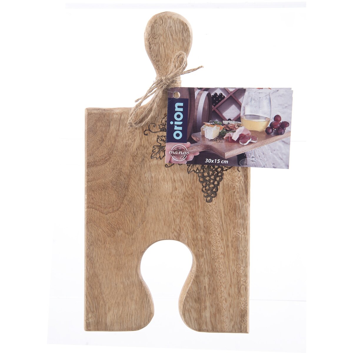Kód produktu 126845Vďaka tejto ochutnávacej doske s vypaľovaným dekorom sa vaše pohostenie stane nevšedným zážitkom. Doska je ideálna na servírovanie alebo ochutnávku syrov, klobás, olív, hrozna... Skvelé využitie v pivniciach pri degustáciách vína, vinobraní... Vďaka tvaru ponúka možnosť spojenia viacerých dosiek za seba a môže tak vzniknúť ľubovoľne dlhá servírovacia plocha. Materiál: drevo mango. Rozmery: 30x15x1,5 cm. Ľahko sa udržuje, stačí ju ľahko utrieť a je pripravená na ďalšie servírovanie.