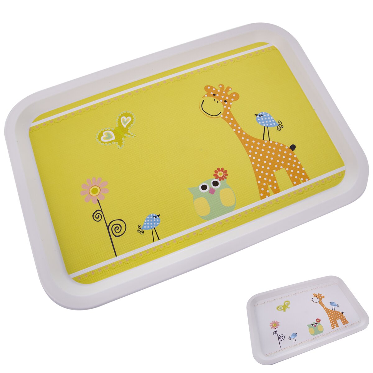 Kód produktu 153793Plastová servírovacia tácka obdĺžnikového tvaru s rozmermi 30,5×21 cm s detským motívom ŽIRAFA.