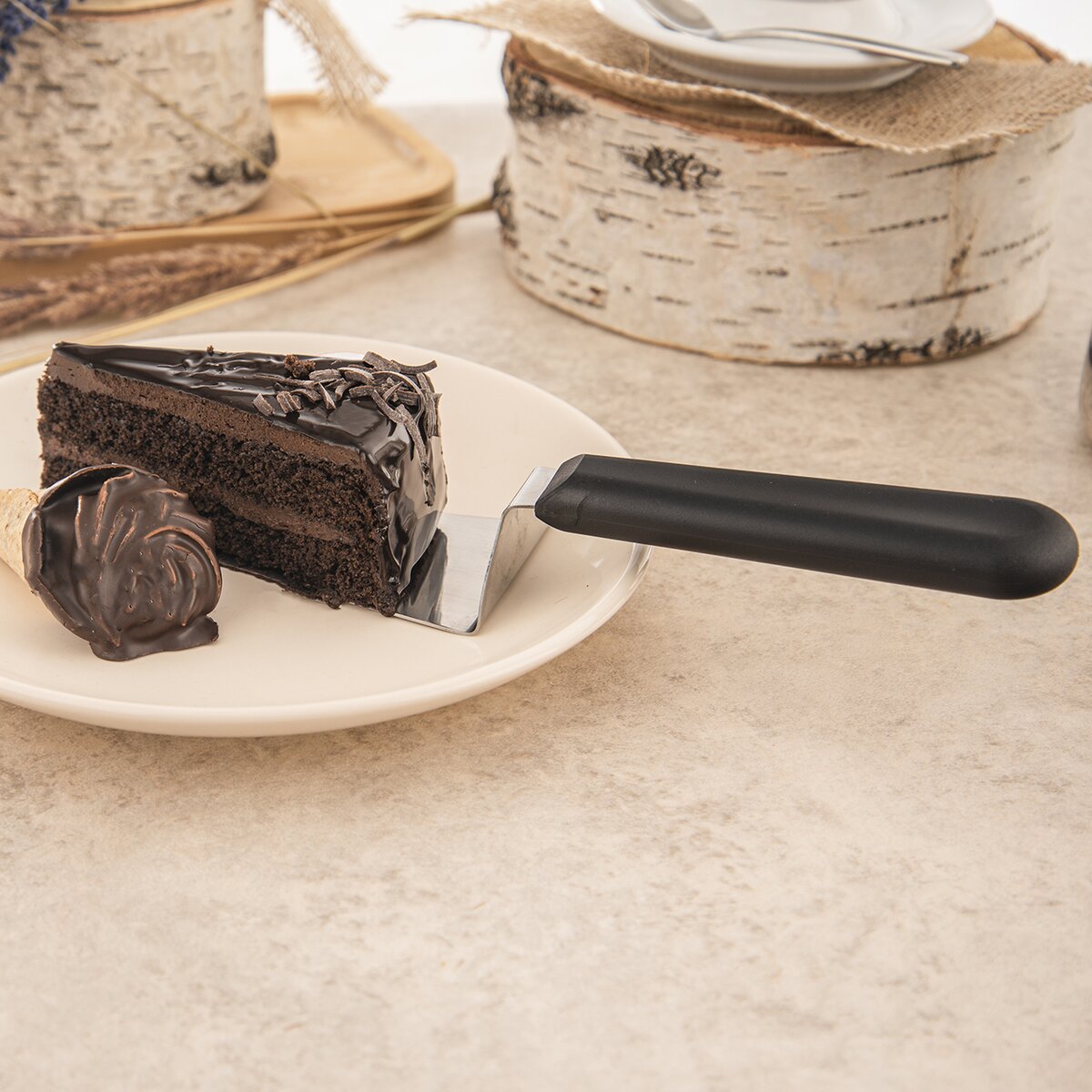 Kód produktu 143011Servírovacia nerezová lopatka na tortu v celkovej dĺžke 26 cm s plastovou rukoväťou.