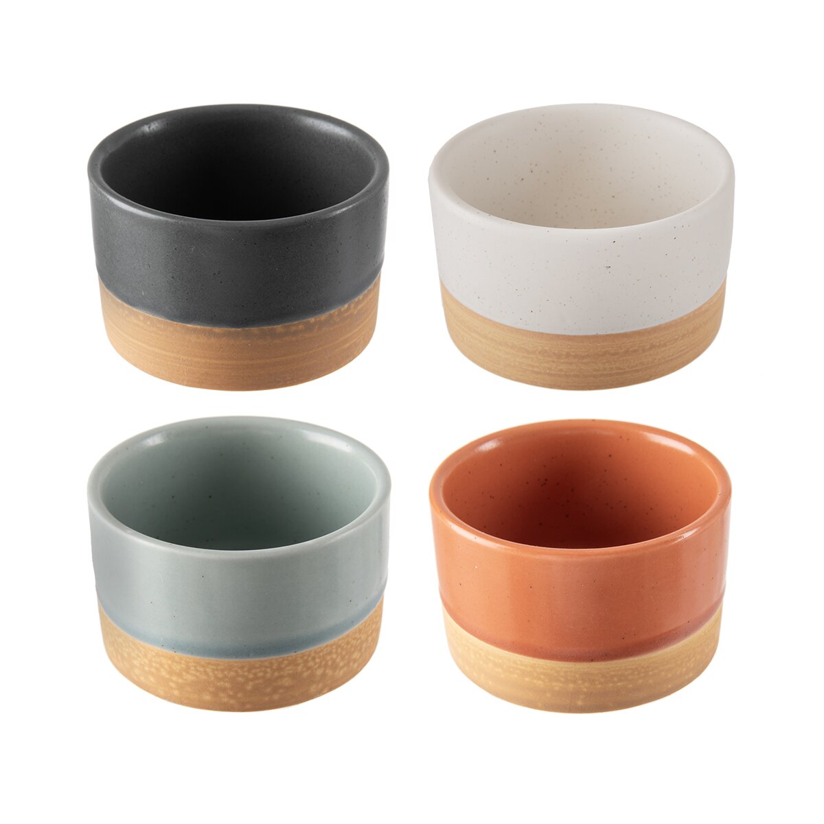 Kód produktu 129857Servírovací set 4 kameninových misiek rôznych farieb sa hodí na podávanie drobných pochutín, orieškov, olív, krekrov a pod.