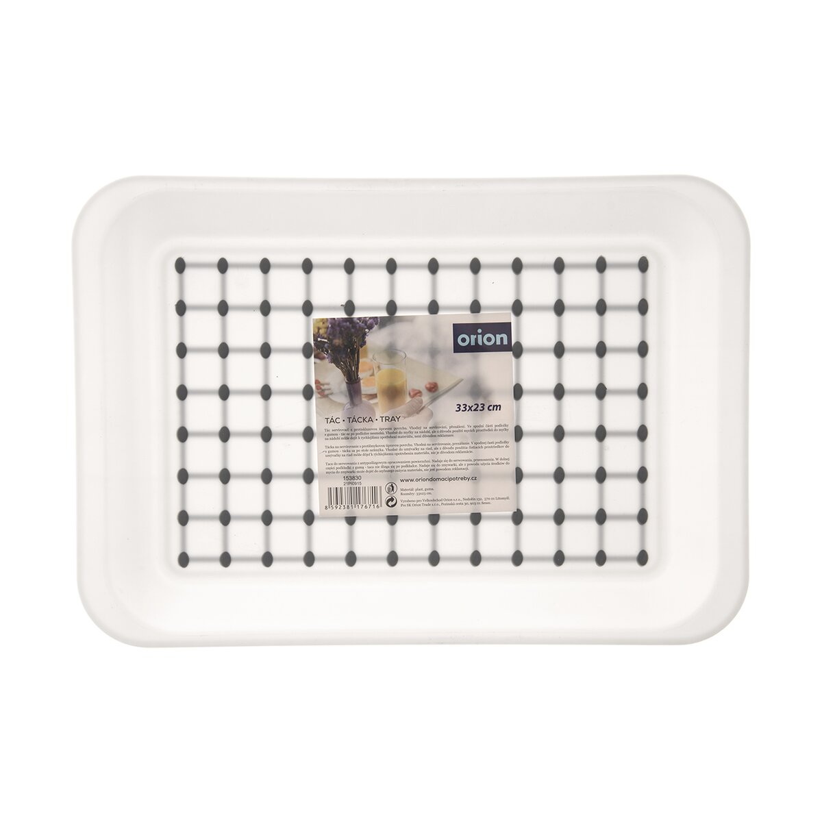 Kód produktu 153830Biela plastová servírovacia tácka obdĺžnikového tvaru, s rozmermi 33×23 cm, s protišmykovou úpravou povrchu.