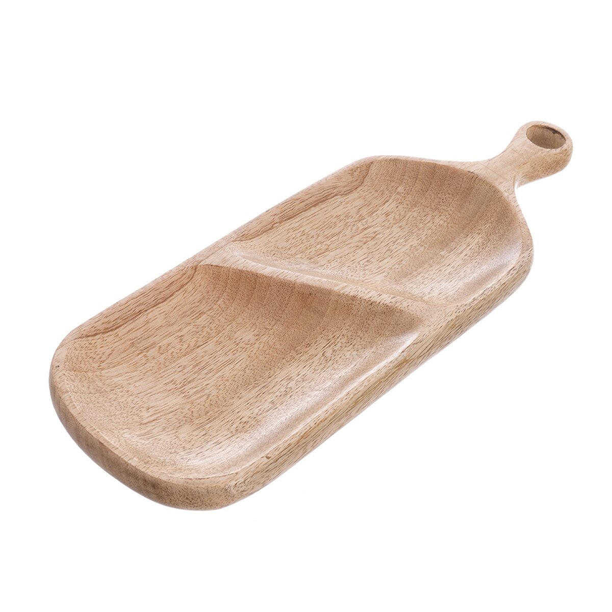 Kód produktu 155028Originálna tácka oživí prestretý stôl a zároveň poslúži ako štýlový aj praktický doplnok domácnosti. Vyrobený z mangového dreva, je možné na ňu servírovať rôzne dobroty, ako sú oriešky alebo iné suché plody, jednohubky a vďaka prehradeniu budete mať servírované dobroty od seba oddelené. Tácka má navyše otvor na zavesenie, takže ju môžete mať vždy po ruke. Nie je vhodná do umývačky riadu. Materiál: mangové drevo. Rozmery: 40,5x14x2,8 cm.