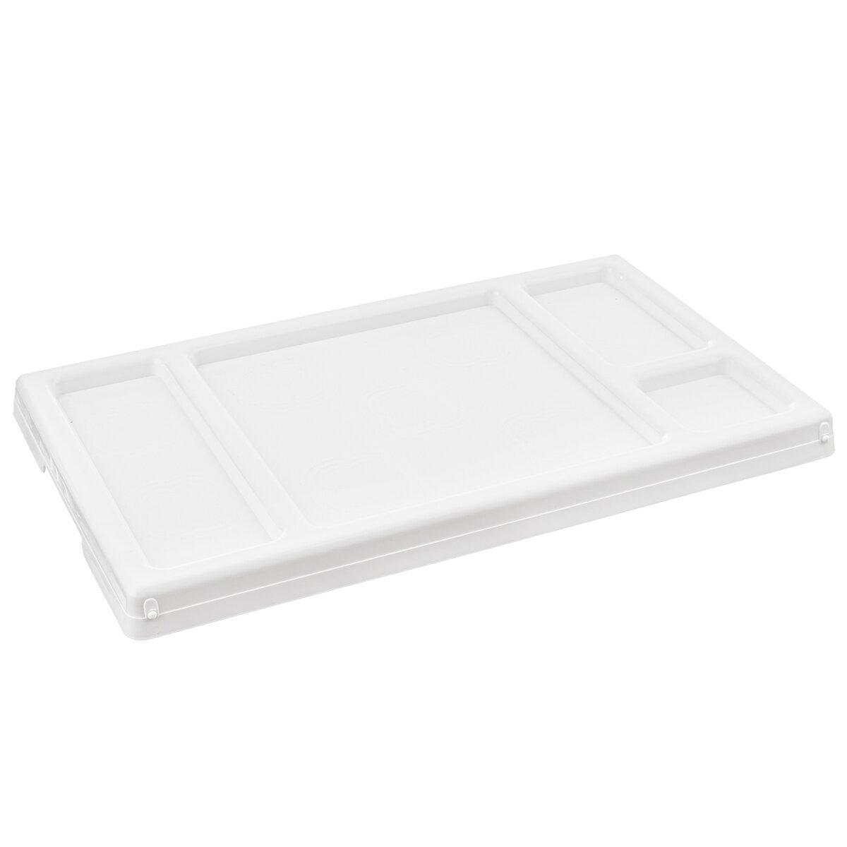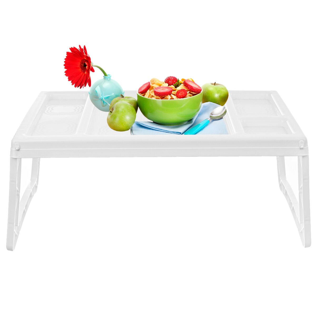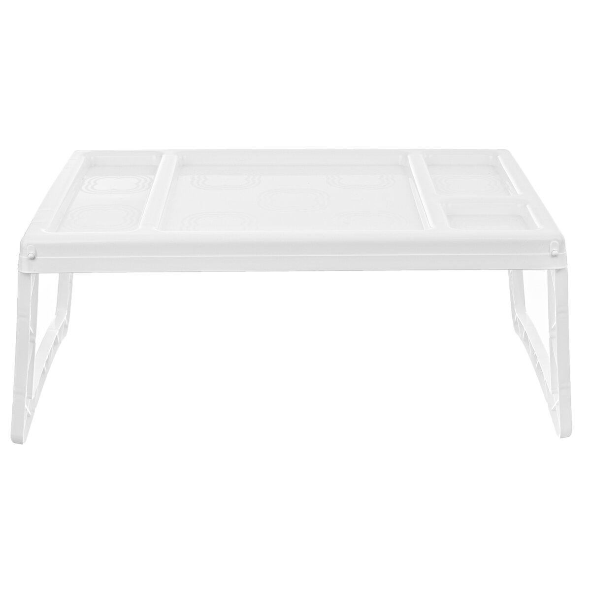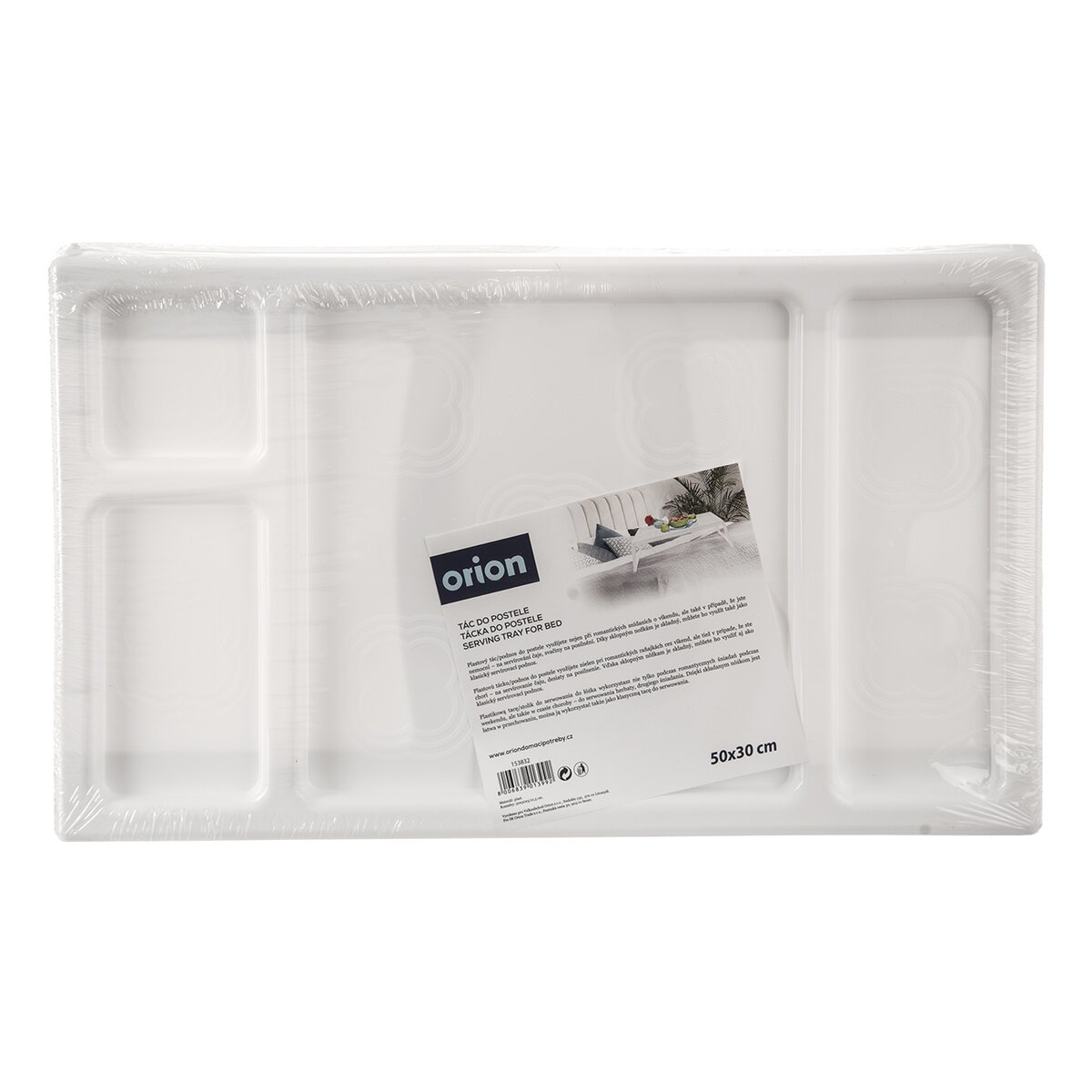 Kód produktu 153832Biely plastový podnos do postele v rozmere 50x30 cm so sklopnými nožičkami a niekoľkými sektormi, kam je možné uložiť oddelene pokrm, nápoje a iné drobnosti.