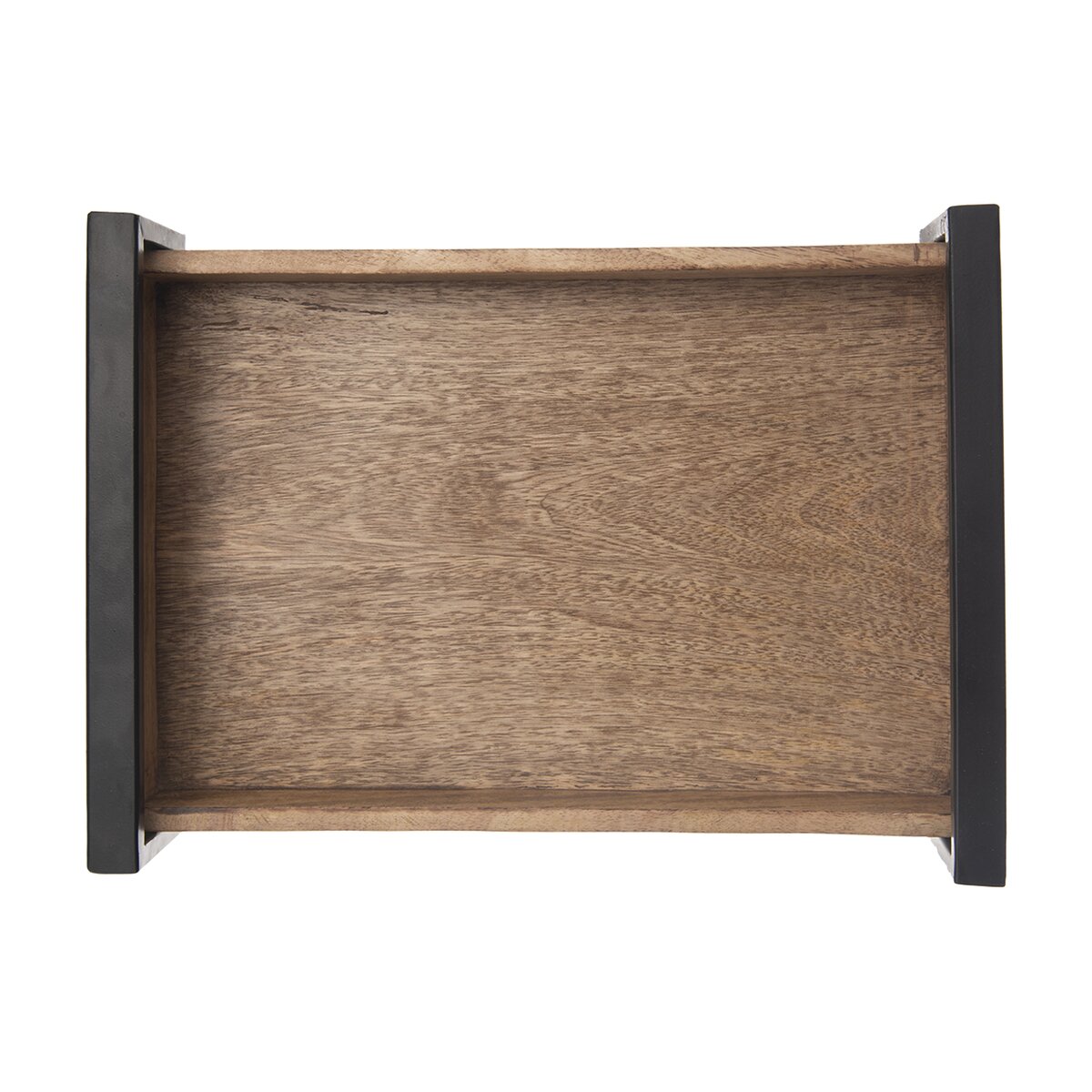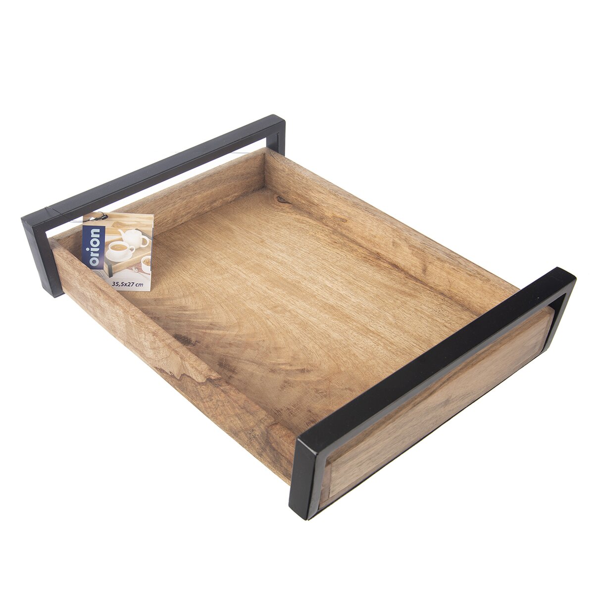 Dobrú kávičku, čaj, domáci koláč alebo drobné zákusky ľahko prenesiete na servírovaciu tácku z mangového dreva. Bočné kovové časti s čiernym nástrekom z tohto menšieho podnosu robia dizajnovú záležitosť. Môže byť aj zaujímavou podložkou na kvetináče s bylinkami, miestom na uloženie dochucovadiel, vázy s kvetinami alebo misky s kamienkami a sviečkou.