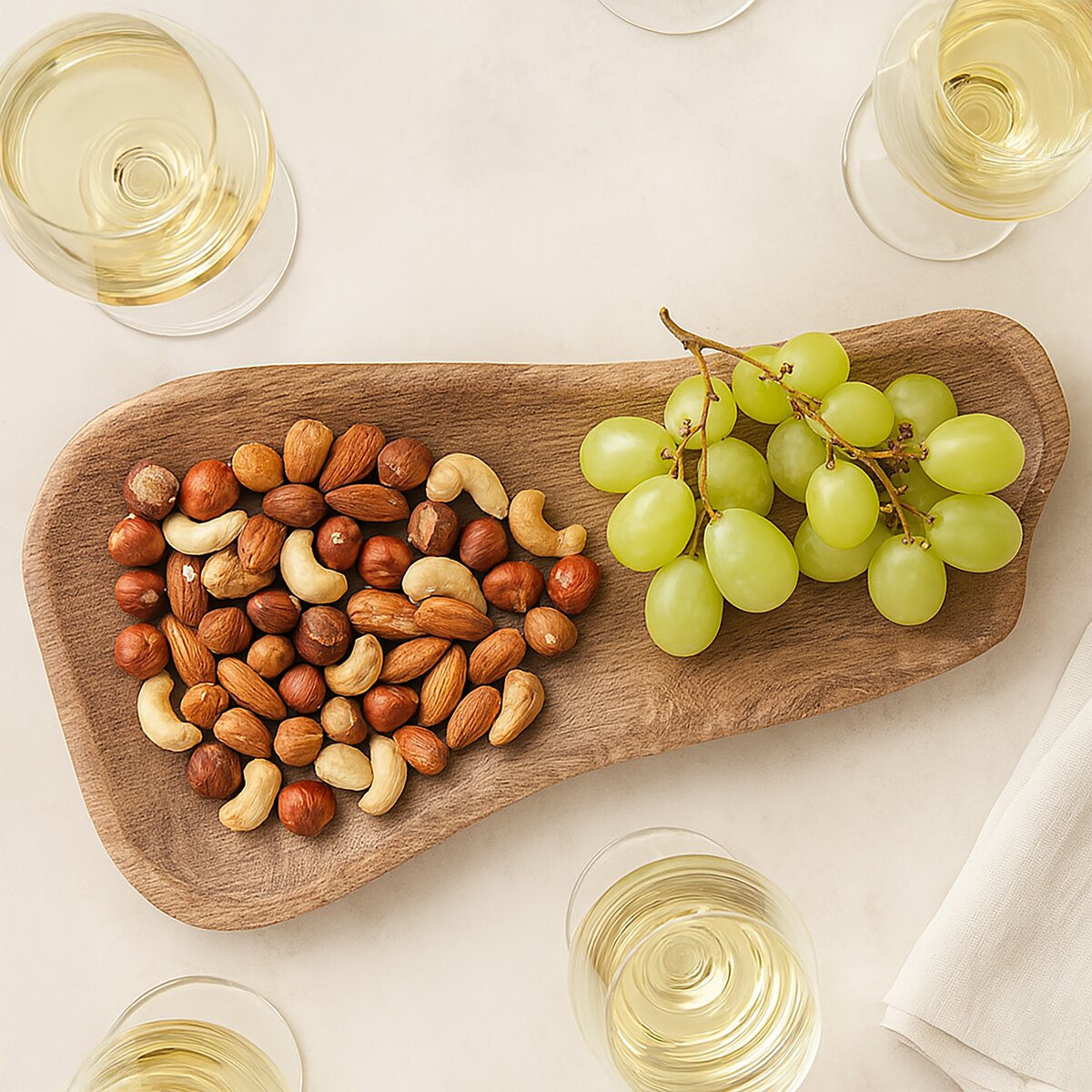Kód produktu 153898Servírovacia tácka z prírodného materiálu v tvare oválu sa skvele hodí na servírovanie suchých plodov, sušeného ovocia, orechov, cukríkov, tort, cukroviniek, slaného drobného pečiva, chlebíčkov, jednohubiek... Samotná je peknou dekoráciou, možno ju doplniť prírodninami, kamienkami, sviečkou. Materiál: mangové drevo. Rozmery: 41x23x3 cm. Nedá sa umývať v umývačke.