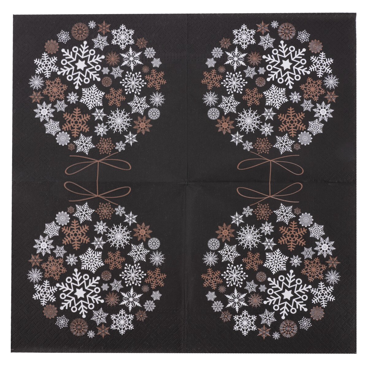 Kód produktu 842377Súprava 20 ks papierových obrúskov v čiernej, trendovej farbe. Obrúsky majú veľkosť 33x33 cm a doplnia prestretý stôl počas vianočných sviatkov aj v období Adventu.