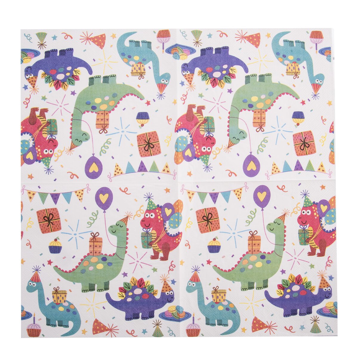 Kód produktu 842336Sada 20 ks svetlých papierových obrúskov s tlačeným motívom dinosaurov párty. Majú veľkosť 33x33 cm a skvele doplnia prestretý stôl doma, v detskej herni alebo ich možno použiť na zabalenie desiaty.