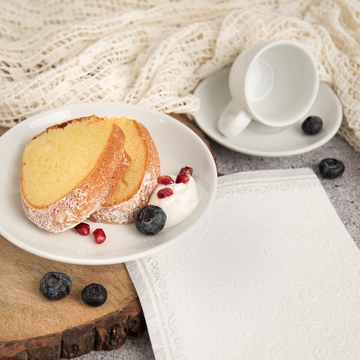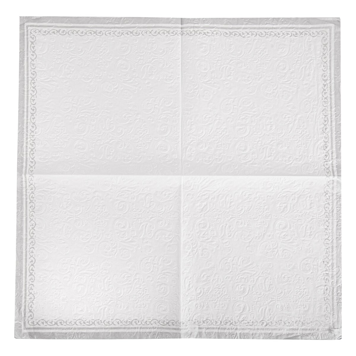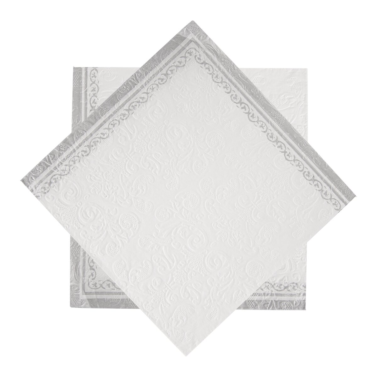 Kód produktu 842346Sada 20 ks bielych papierových obrúskov vo veľkosti 33x33 cm zdobí jemný plastický dekor a veľmi dobre doplní sviatočne prestretý stôl, piknikový kôš alebo pomôže pekne zabaliť desiatu.