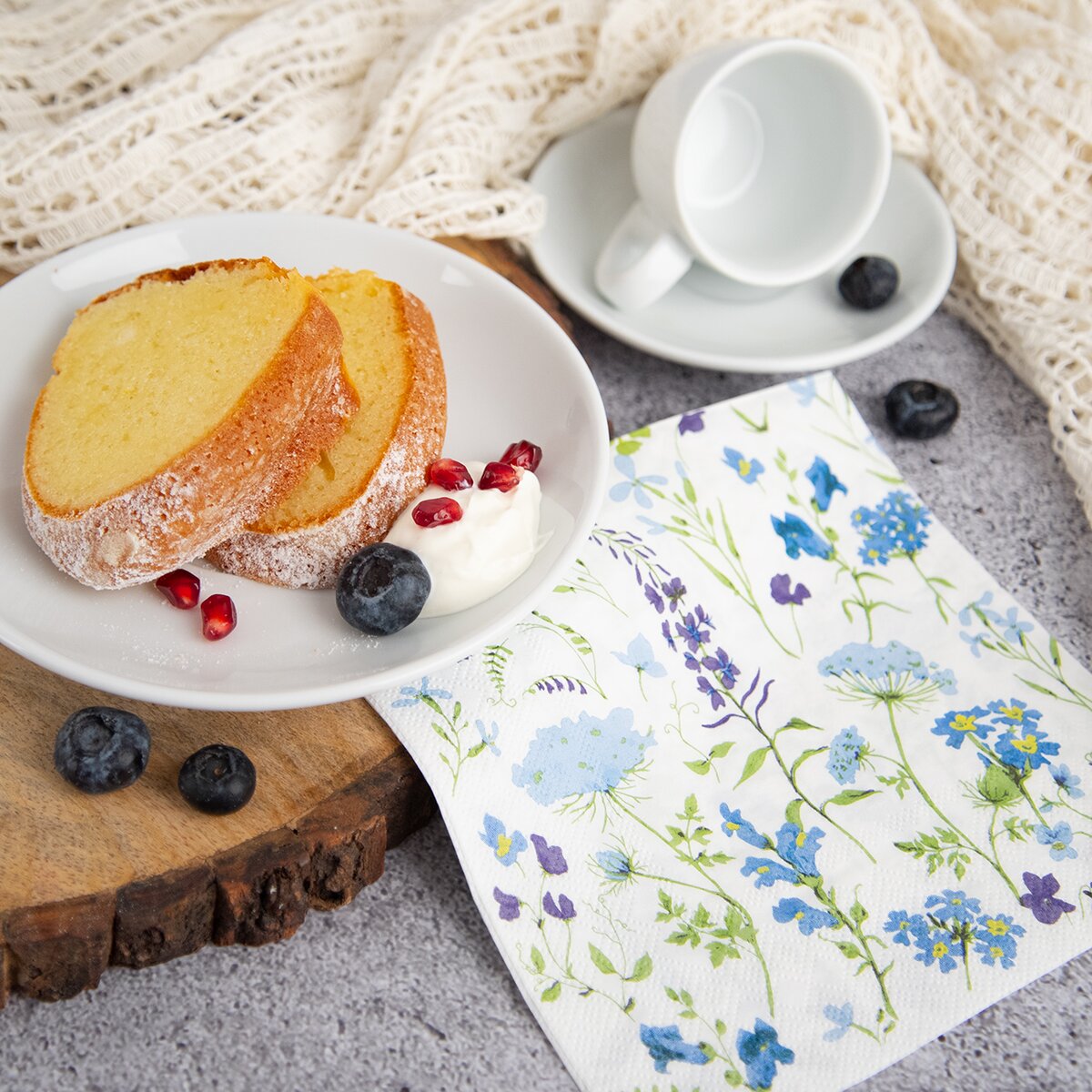 Trojvrstvové obrúsky s drobným kvetinovým vzorom sa hodia na akúkoľvek príležitosť. Pre krásne prestretý stôl pri nedeľnom obede alebo pohodovom stolovaní na záhrade, pri grile, pri posedení v tráve s piknikovým košíkom, ale aj na bežné prestieranie pri raňajkách, obeda či večere.