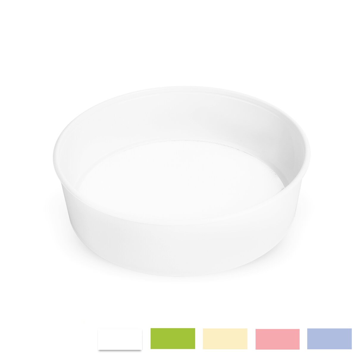 Kód produktu 124404Okrúhle plastové sito na múku s priemerom 20 cm v niekoľkých farebných variantoch.
