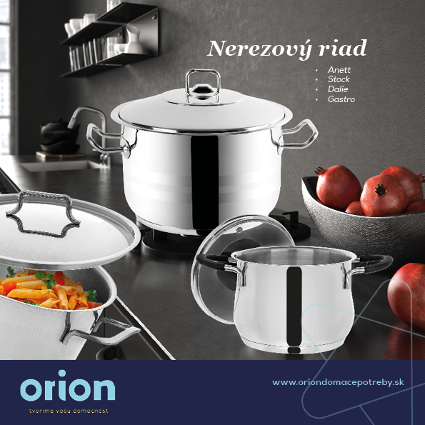 Predstavujeme vám minikatalóg Orion – praktické leporelo plné noviniek z nášho sortimentu. Na niekoľkých prehľadných stránkach objavíte zaujímavé kúsky, ktoré vám spríjemnia každodenný život, varenie, pečenie aj stolovanie. Nájdete tu nový, kvalitný riad na varenie doma aj na chalupe. Nechýba ani elegantný porcelán, ktorý krásne doplní váš prestretý stôl.