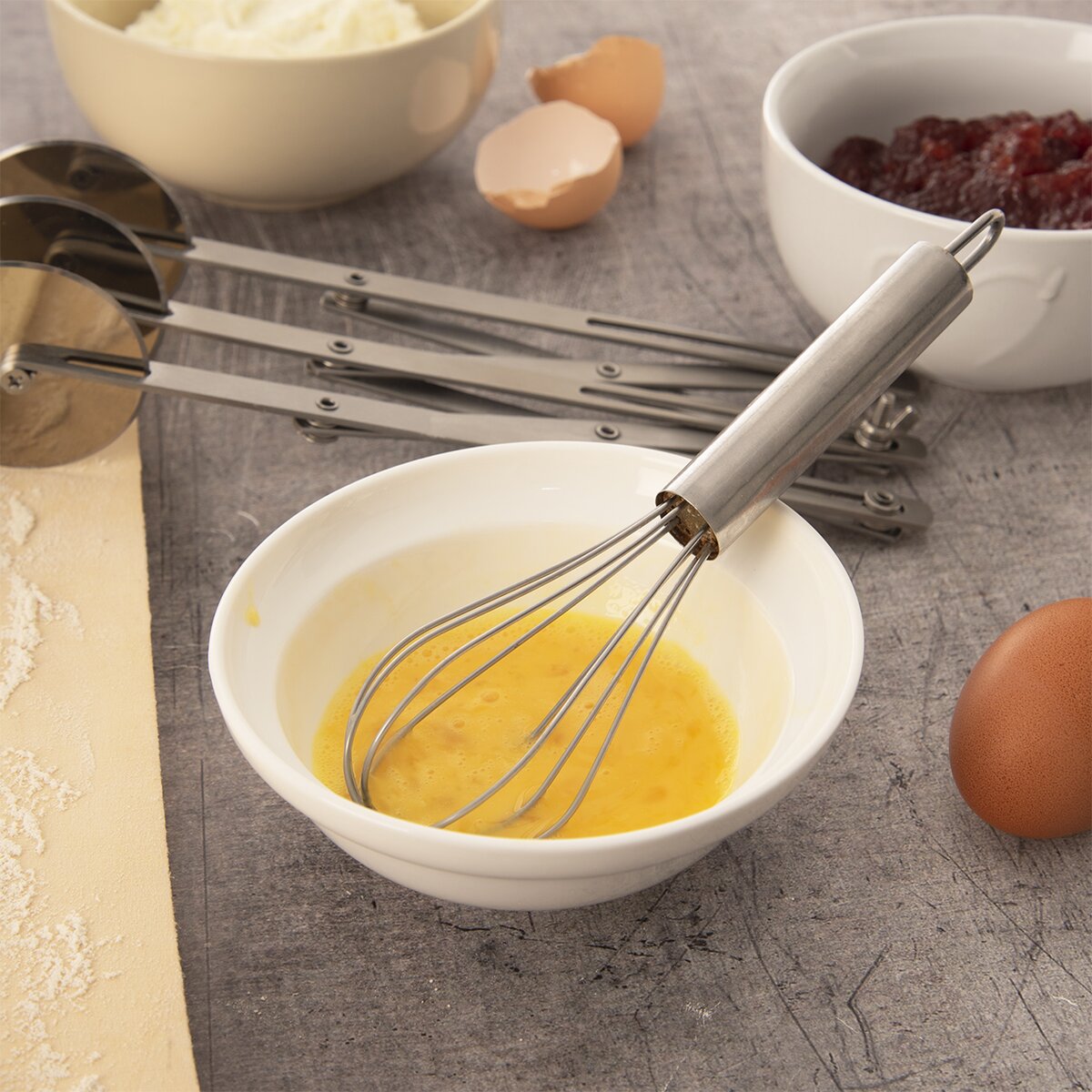 Nerezová metlička na šľahanie s priemerom 4 cm, pre rýchle a ľahké ručné šľahanie a prevzdušnenie. Pomôže s prípravou snehu z bielkov, jemných hladkých krémov, bešamelu, pri príprave pudingu, riedkych ciest, miešaných vajec aj majonézy.