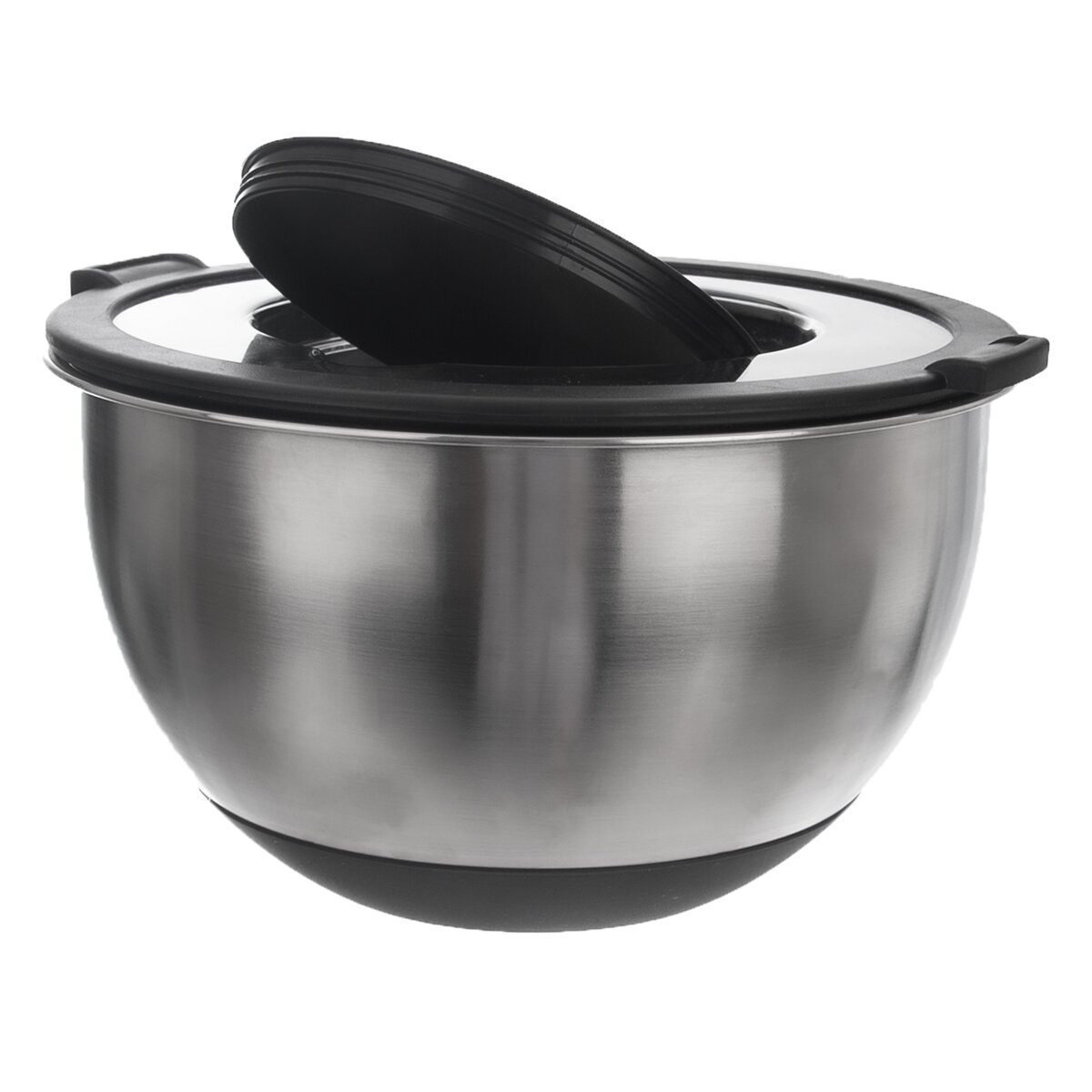 Kód produktu 120293Kvalitná okrúhla nerezová misa objemom 3 l, s priehľadným plastovým viečkom a s otváracím stredom, ktorý uľahčí šľahanie, zabráni striekaniu cesta. Má praktické protišmykové silikónové dno.