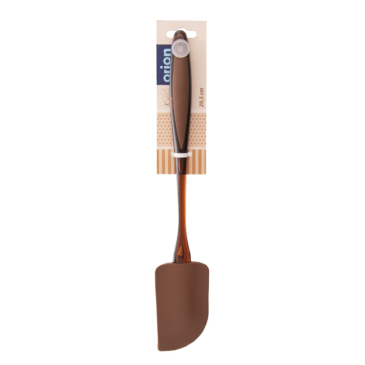 Stierka s uchom na zavesenie. Mäkké hrany dokonale priľnú k nádobe. Materiál: silikón – odolný voči teplotám -40 °C až +220 °C, plast -40 °C až +100 °C. Rozmery: š. 5 cm, d. 29,5 cm.