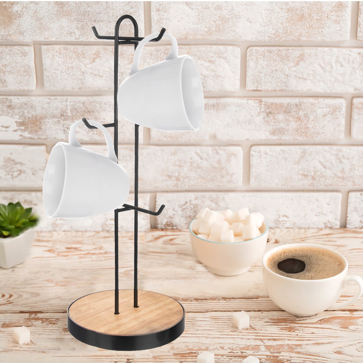 Kód produktu 122976Čierny kovový stojan na hrnčeky s drevenou základňou zaistí, že budú šikovne, viditeľne uložené.