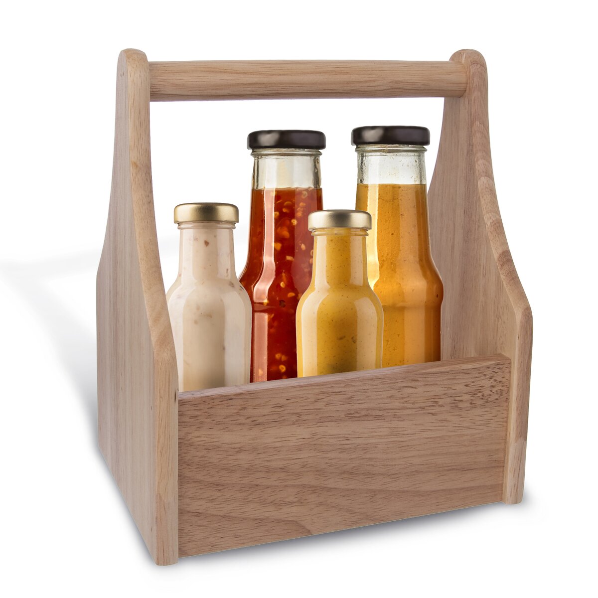 Pokiaľ navyše organizujete rodinnú oslavu, grilovačku alebo menšie párty, vďaka praktickému držadlu si vybrané dochucovadlá pohodlne prenesiete na jedálenský stôl, kde si z nich môžu vaši hostia vyberať podľa vlastnej chuti. A v reštauračných zariadeniach v ňom môžete servírovať hosťom dochucovadlá alebo príbory.