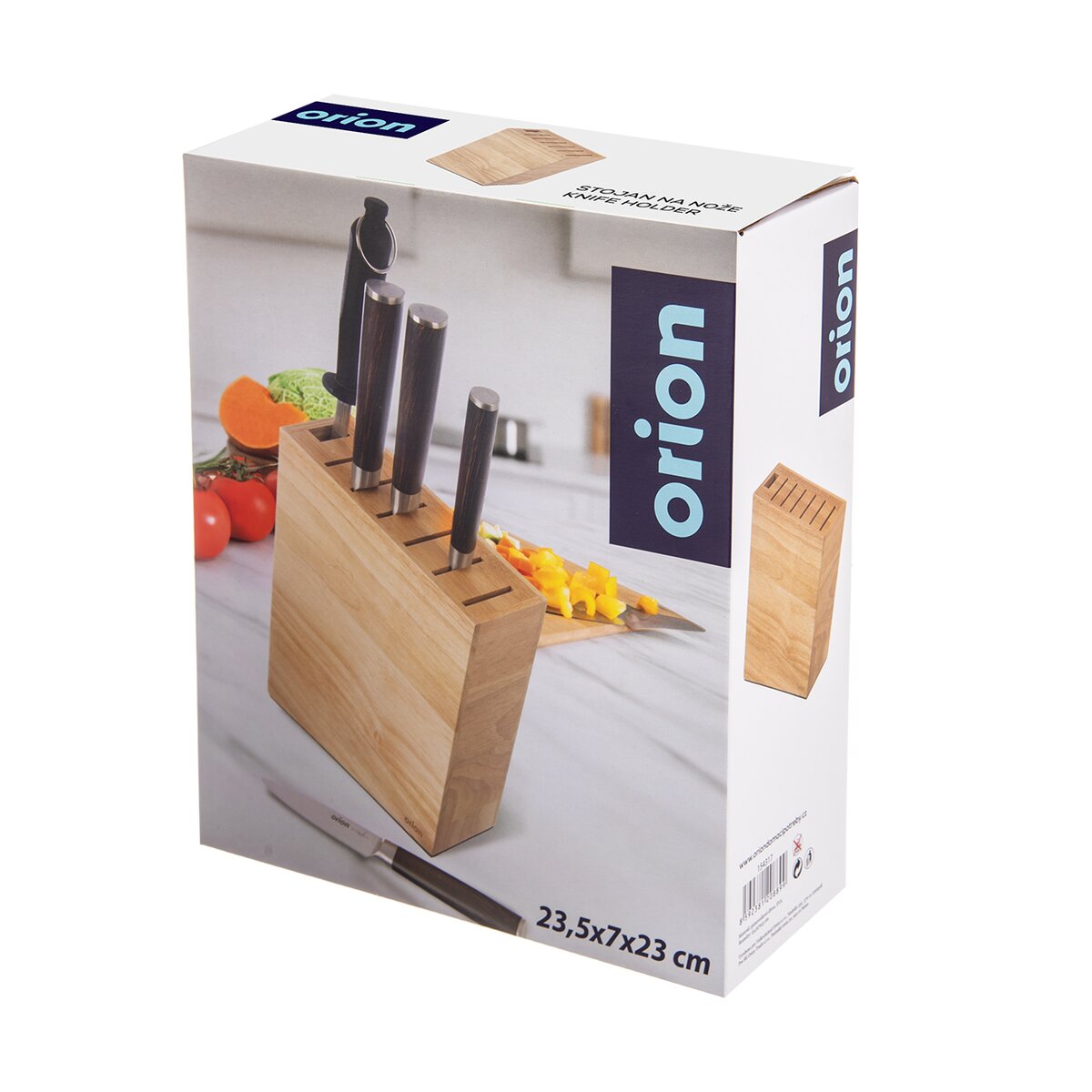 Praktickým riešením na uloženie ostrých kuchynských nožov je stojan na nože.  V tomto stabilnom stojane z gumovníkového dreva je možné uložiť nože, či už ide o malé nože na zeleninu alebo veľké santoku nože so širším ostrím. Každý nôž stačí vsunúť do drážky v hornej časti, takže sa nebudú o seba trieť, nedôjde k tupeniu a poškodeniu ostria. Navyše je tu aj otvor, kam je možné zasunúť nožnice, prípradne ocieľku a iné náčinie, ktoré je potrebné nielen na krájanie.