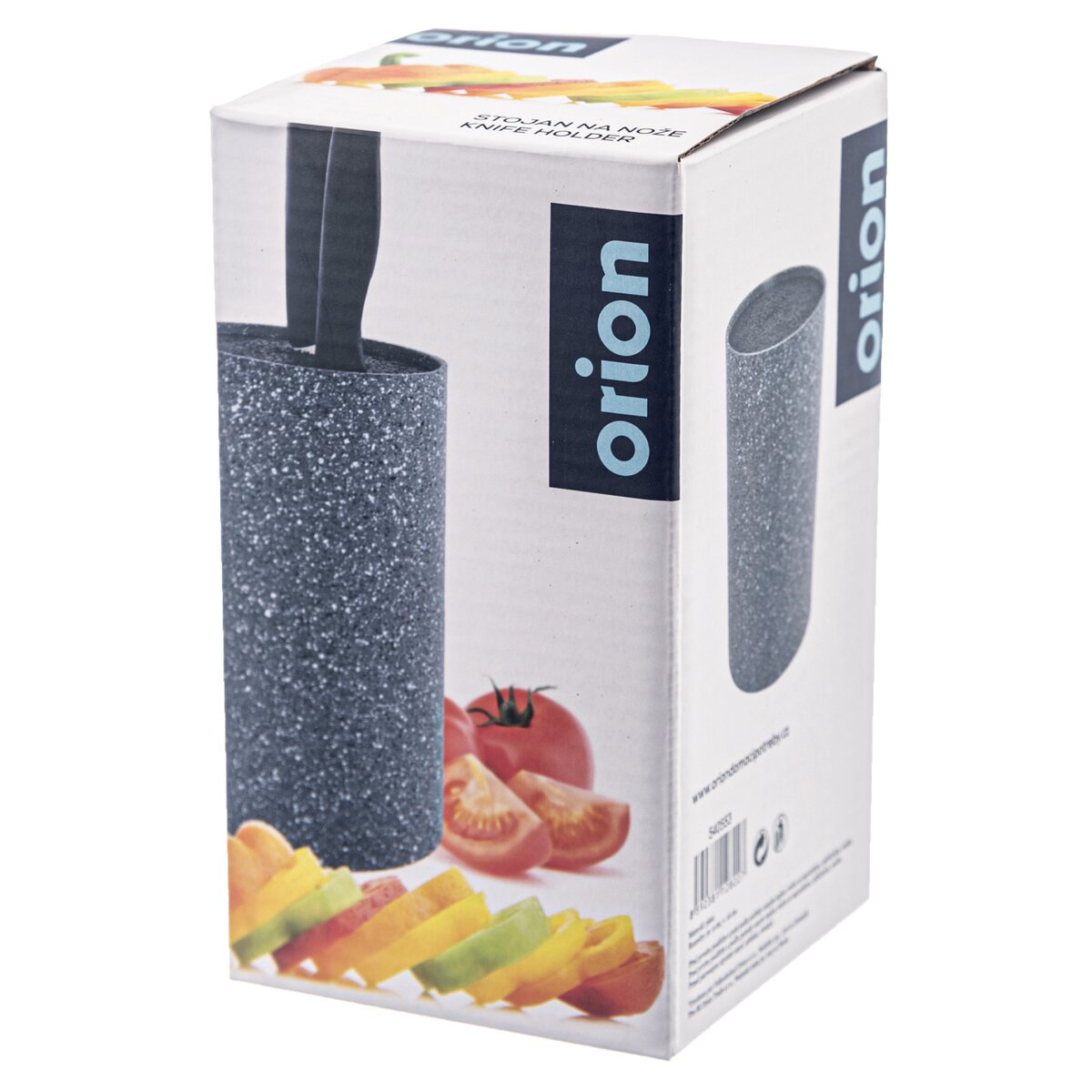 Kód produktu 540553Okrúhly plastový stojan na nože pr. 9 cm s farbou mramoru so syntetickými štetinami na uloženie kuchynských nožov aj nožníc.