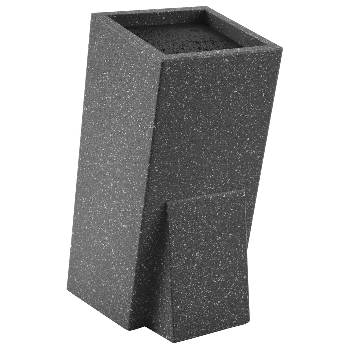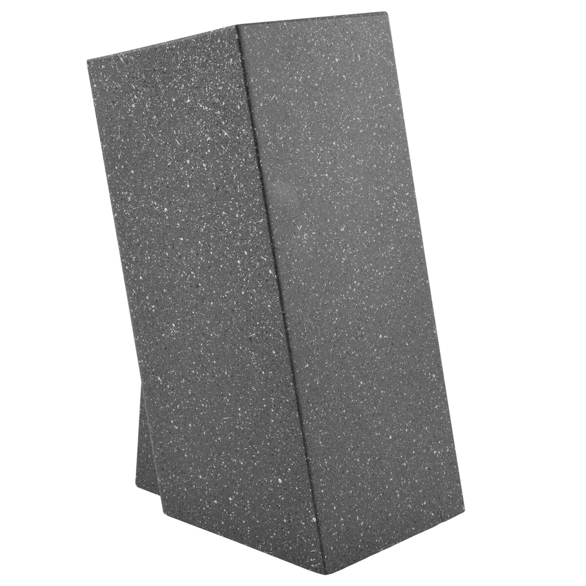 Kód produktu 540555Hranatý drevený stojan na nože s povrchom imitujúcim mramor a s plastovými štetinami na uloženie kuchynských nožov aj nožníc.