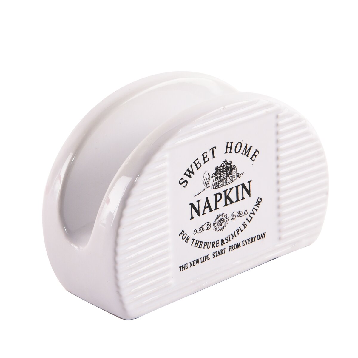 Kód produktu 540564Stojan na obrúsky. Farba biela, dekor SWEET HOME. Materiál: keramika. Rozmery: 11x4,5x7 cm.