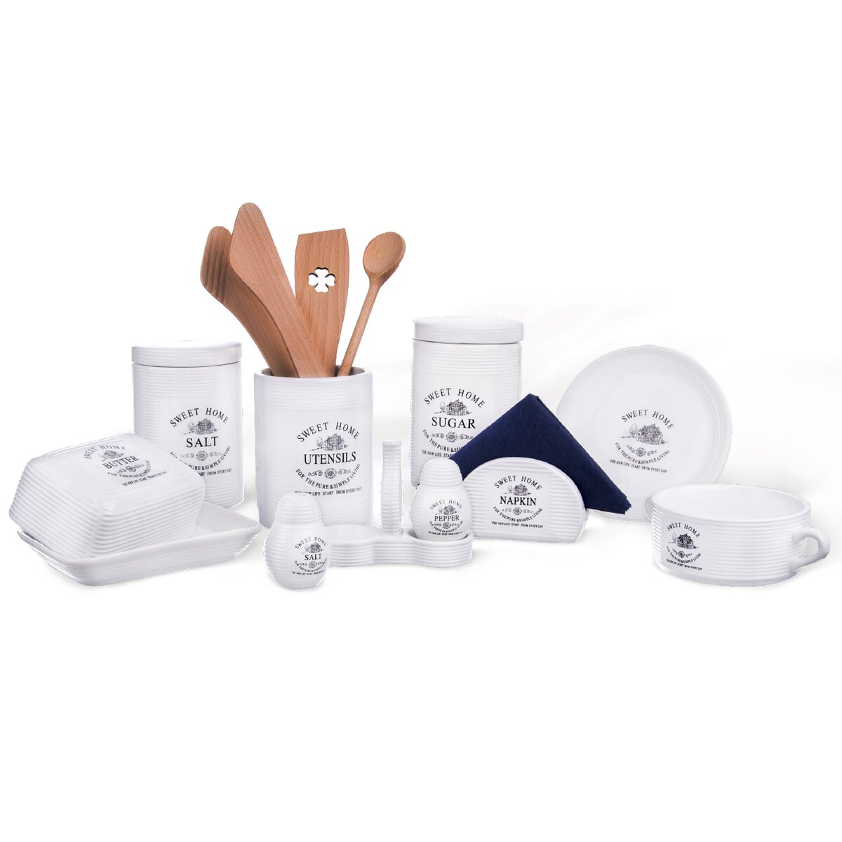 Stojan na obrúsky. Farba biela, dekor SWEET HOME. Materiál: keramika. Rozmery: 11x4,5x7 cm.