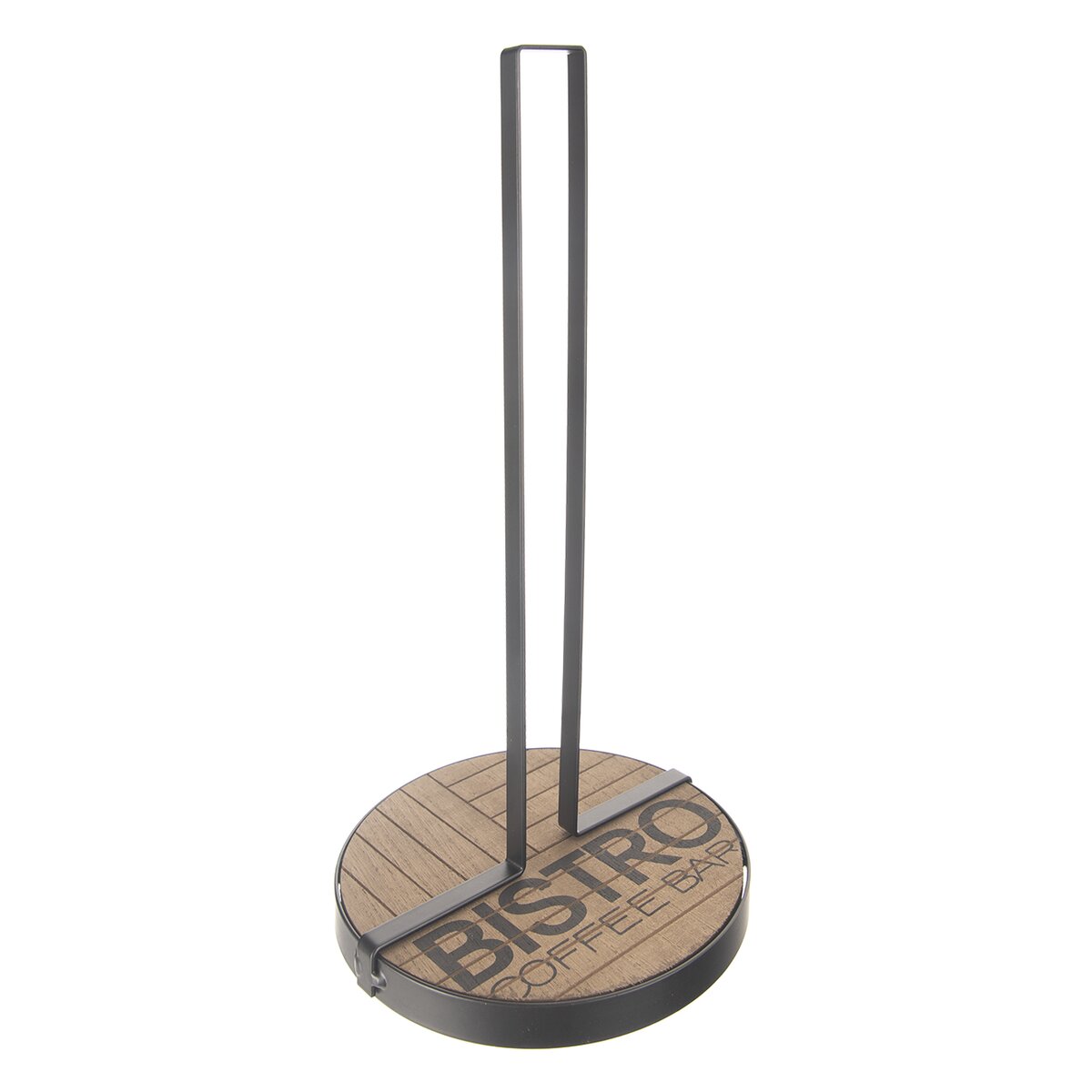 Stojan na papierové utierky zaistí, že budú mať svoje stále miesto na kuchynskej linke alebo pri stole. Je kombináciou drevovláknitej dosky MDF a základne s tyčou z kovu s čiernym nástrekom.