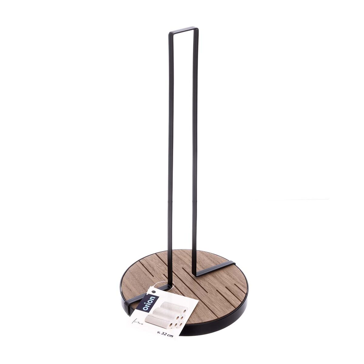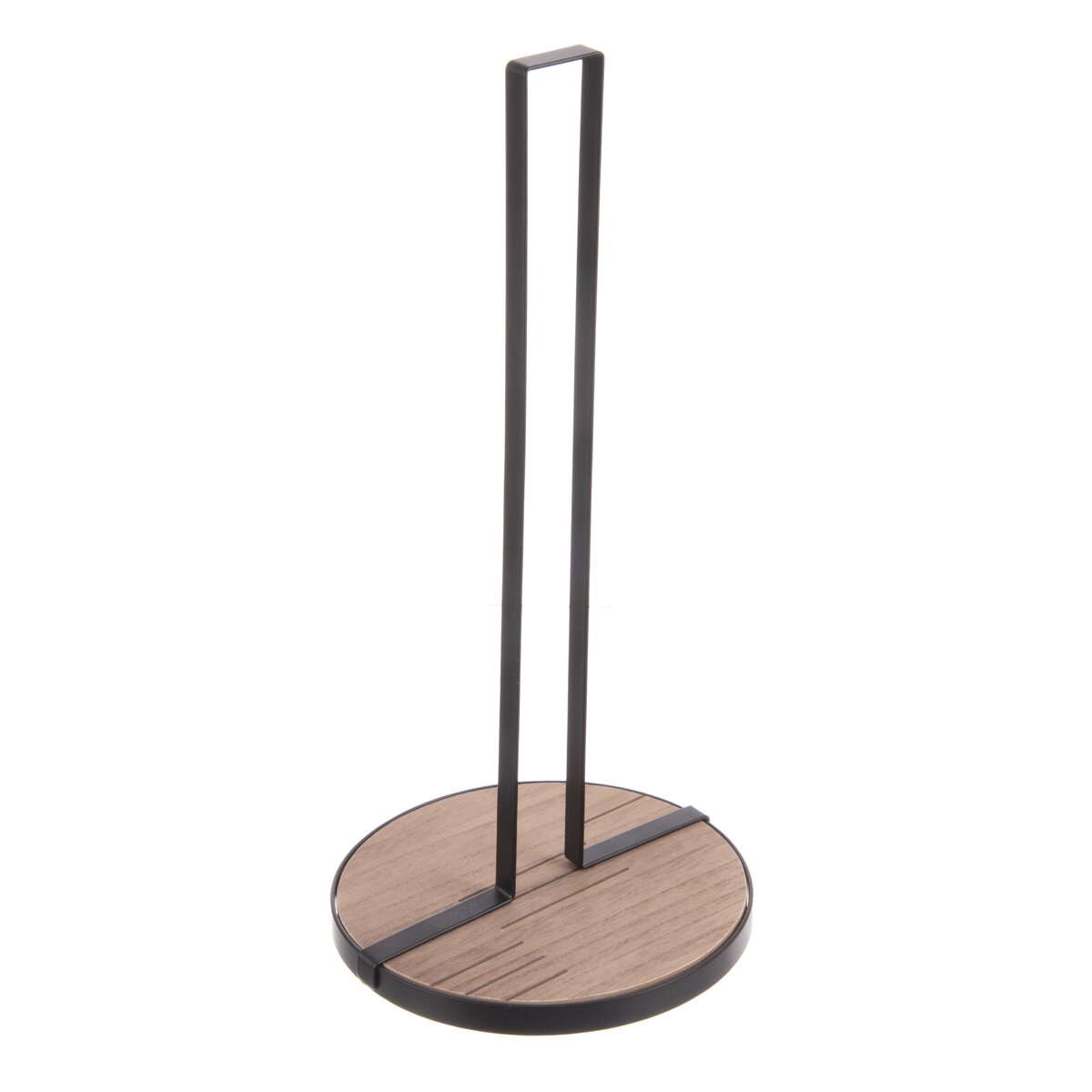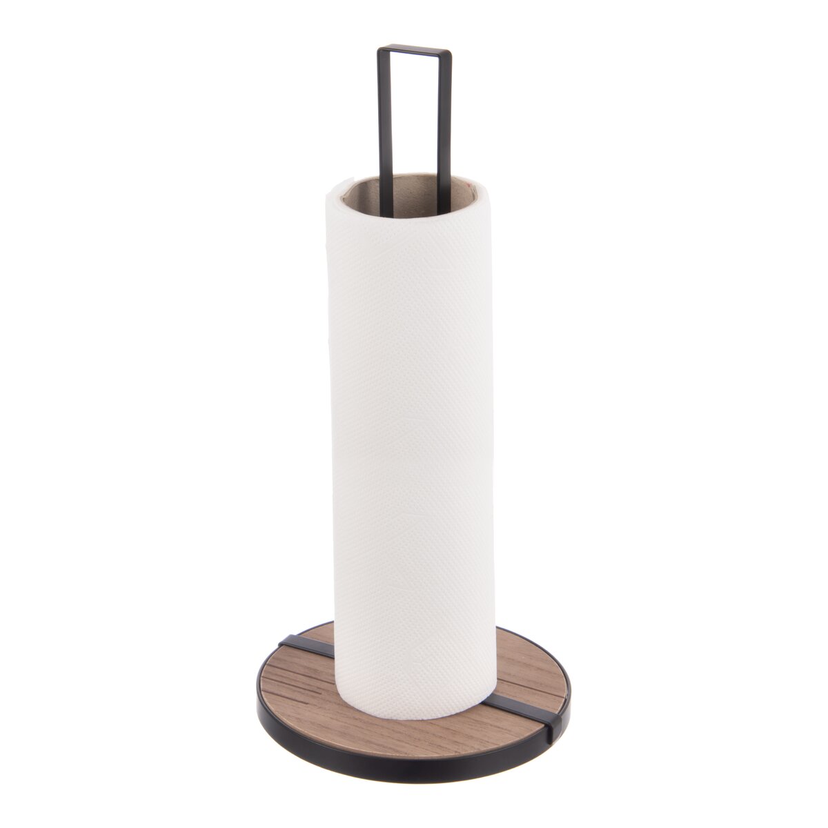 Stojan na papierové utierky zaistí, že budú mať svoje stále miesto na kuchynskej linke alebo pri stole. Je kombináciou drevovláknitej dosky MDF a základne s tyčou z kovu s čiernym nástrekom.