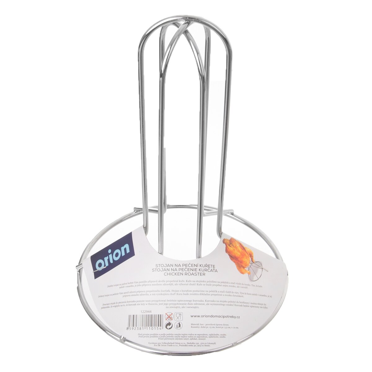 Tento drôtený stojan Vám pomôže pripraviť skvele prepečené kura. Jeho dolný priemer je 15 cm a horný 5,5 cm. Kurča nasadíme na stojan a položíme na pekáč, ktorý vložíme do rúry.