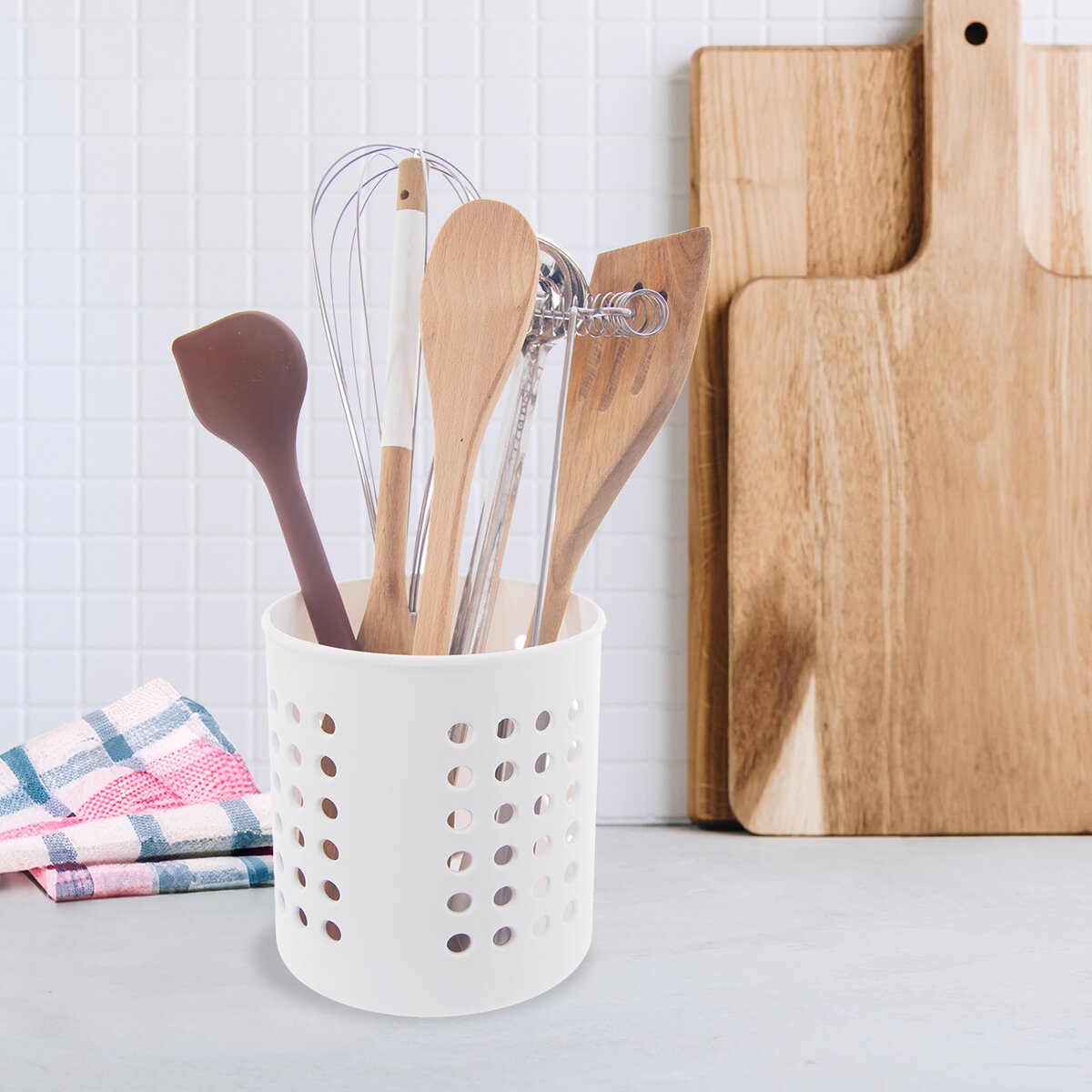 Kód produktu 154311Plastový biely stojan s otvormi je určený na ukladanie kuchynského náčinia na linke, príborov alebo slúži ako odkvapkávač na príbory.