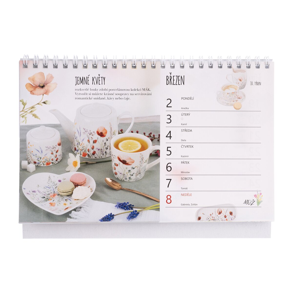 Kód produktu 834673Týždenný stolný kalendár Orion na rok 2026 vrátane kartónového stojanu. Materiál: papier 115 g krieda matná, drôtená špirála (Twin wire biela). Rozmery: 22,5x19,5 cm.