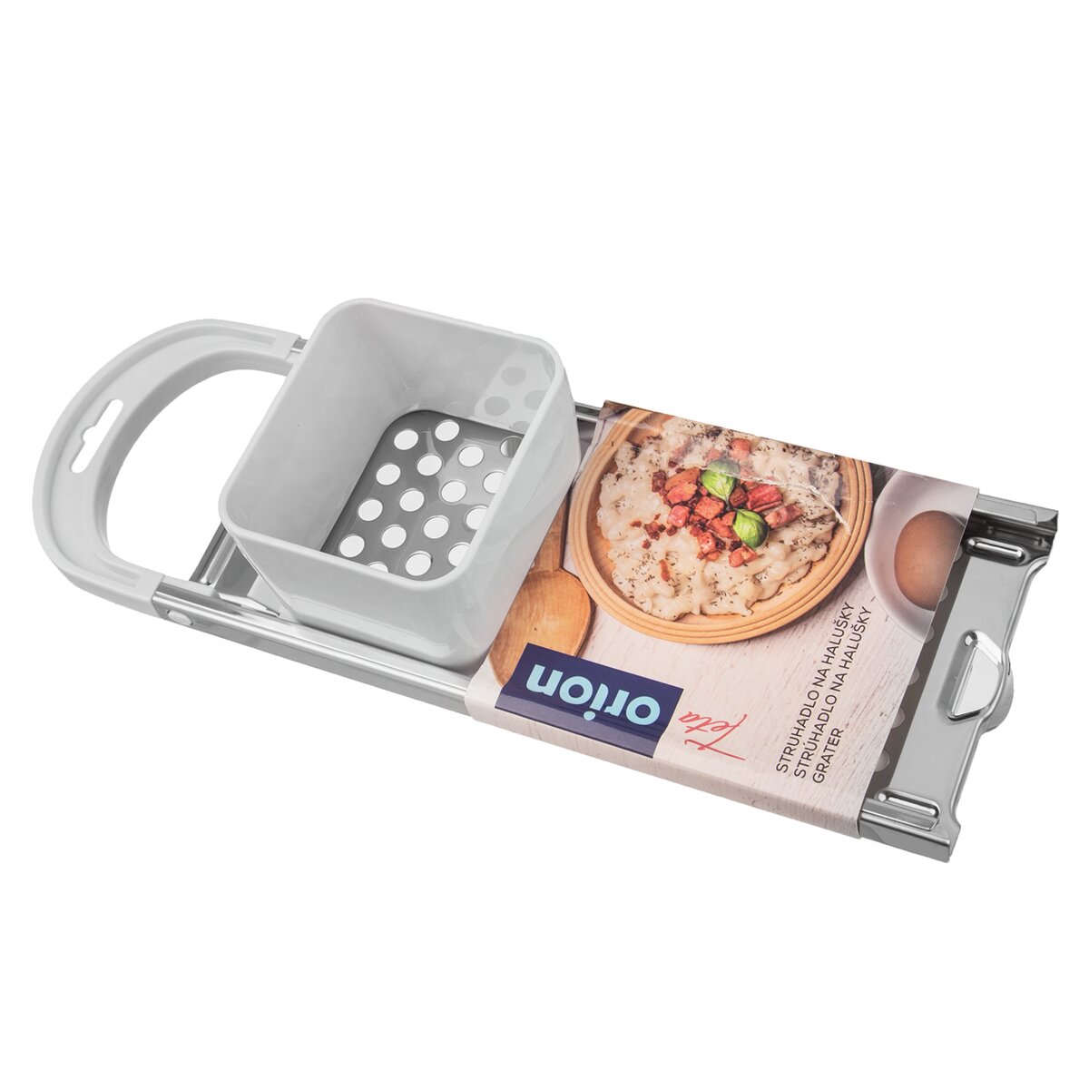 Kód produktu 120752Pevné plastové strúhadlo s nerezovou doskou s guľatými otvormi a v drážke sa pohybujúcim nástavcom, pre jednoduchú prípravu halušiek, pečeňových knedličiek, polievkových závariek.