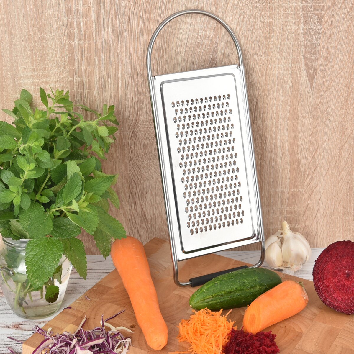 Viac informáciíKlasika medzi strúhadlami. Toto ploché nerezové strúhadlo s menšími otvormi využijete nielen na strúhanie zeleniny na jemno do polievky, ovocia na šalát, syrov k zapečeniu pokrmov v rúre, ale aj čokoládu na zmrzlinový pohár, nedeľný dezert ku káve alebo tvrdý perník na slivkové knedle.