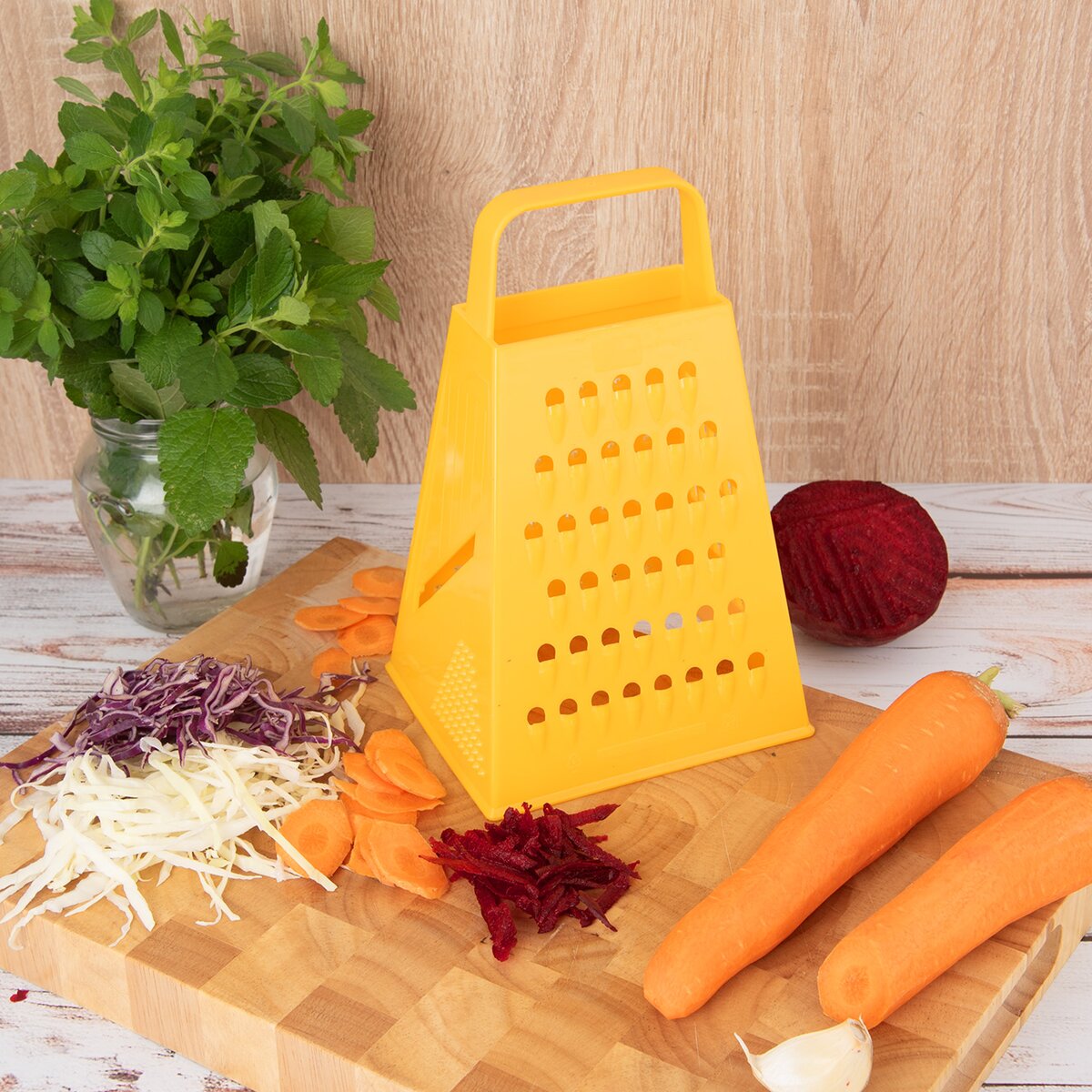 Kód produktu 130490Klasické plastové štvorhranné strúhadlo s rôznymi typmi plôch, určené na strúhanie ovocia, zeleniny i syrov. Toto strúhadlo sa dá využiť na väčšinu potravín, s ktorými varíte.