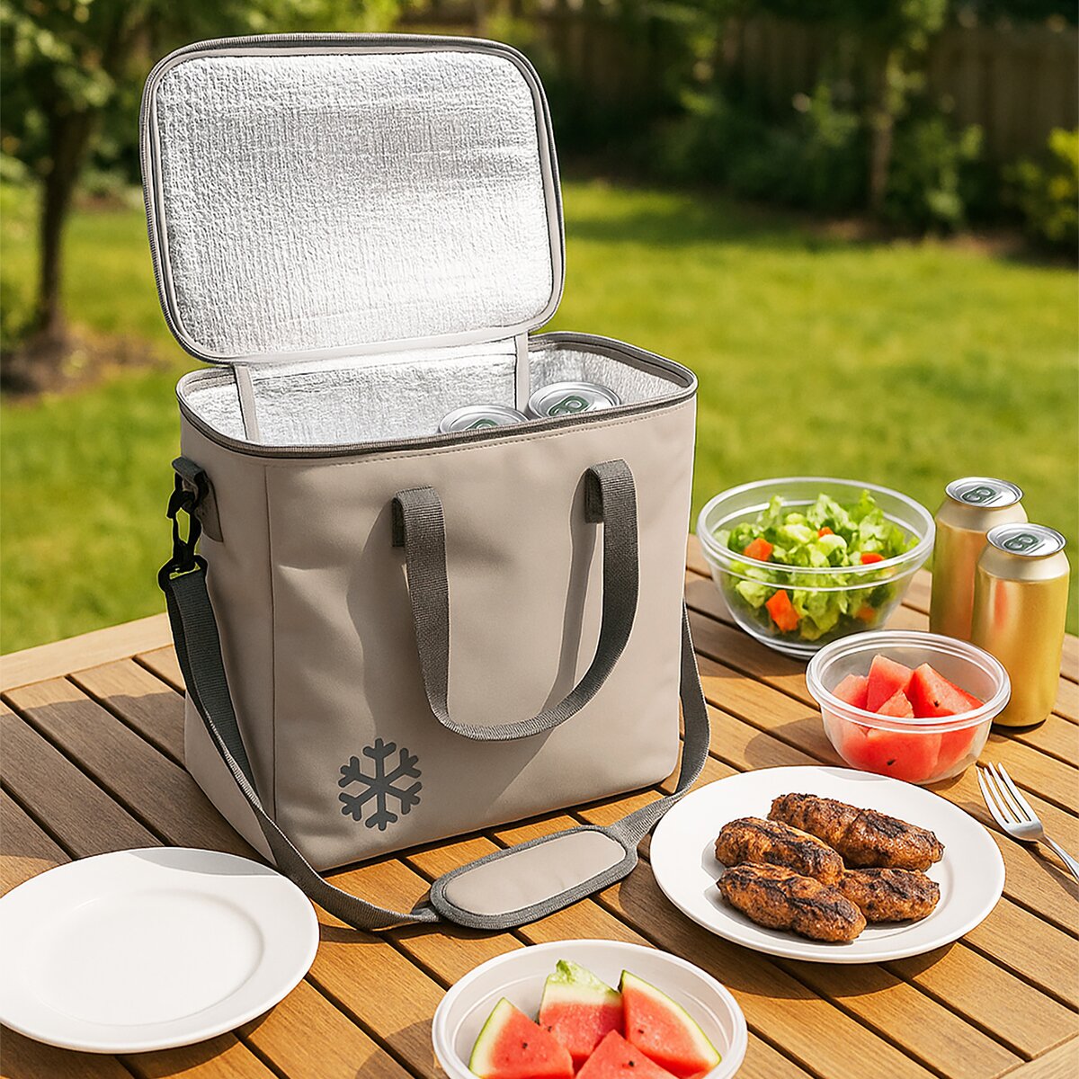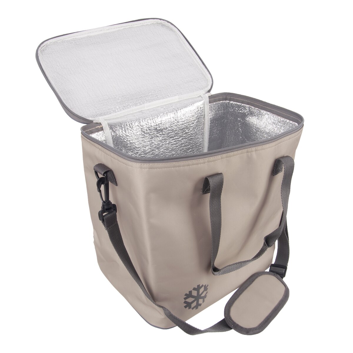 Kód produktu 731433Veľká termobrašňa s objemom cca 18 l umožní uloženie teplých či chladených potravín a nápojov v nádobách tak, aby si zachovali svoju teplotu po dlhšiu dobu. To je praktické na cestách, na pikniku, výletoch aj pri vode.
